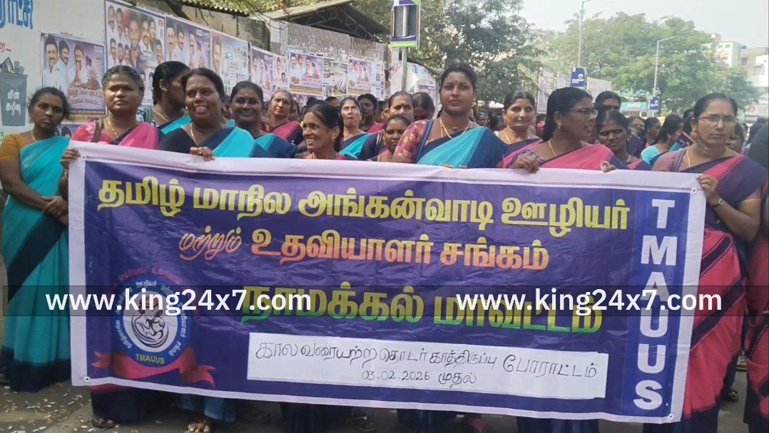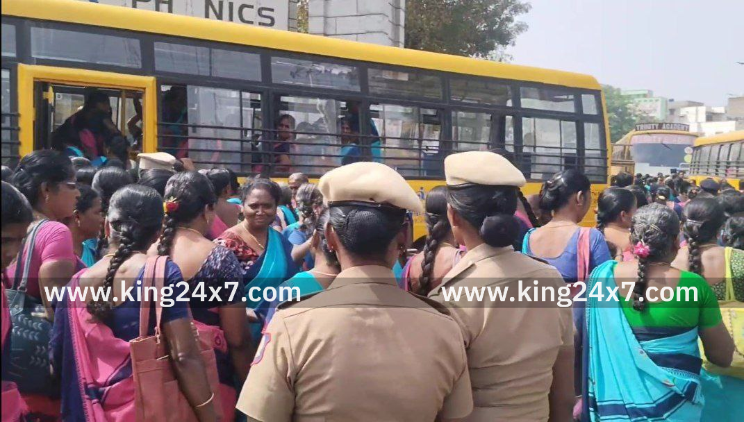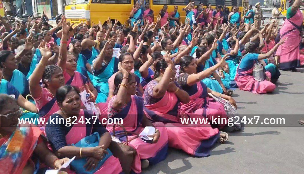 நாமக்கல்லில், தமிழ் மாநில அங்கன்வாடி ஊழியர் மற்றும் உதவியாளர் சங்கத்தின் மாவட்ட கிளை சார்பில், காலவரையற்ற தொடர் காத்திருப்பு போராட்டம், நாமக்கல் பூங்கா சாலையில் நடைபெற்றது. மறியல் போராட்டத்தில் ஈடுபட முயன்ற 300-க்கும் மேற்பட்ட அங்கன்வாடி ஊழியர்கள் மற்றும் உதவியாளர்களை காவல்துறையினர் கைது செய்தனர். சாலையில் படுத்து திடீர் மறியலில் ஈடுபட்ட பெண்களால் பரபரப்பு ஏற்பட்டது.;