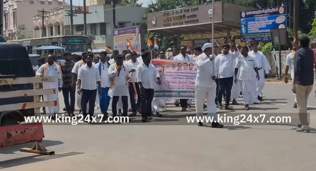 மகாத்மா காந்தி தேசிய ஊரக வேலை உறுதியளிப்பு திட்டத்தை சிதைக்கும் மத்திய அரசை கண்டித்து நாகையில் காங்கிரஸ் கட்சியின் சார்பில் நடைபயணம் மற்றும் கண்டன ஆர்ப்பாட்டம் நடைபெற்றது