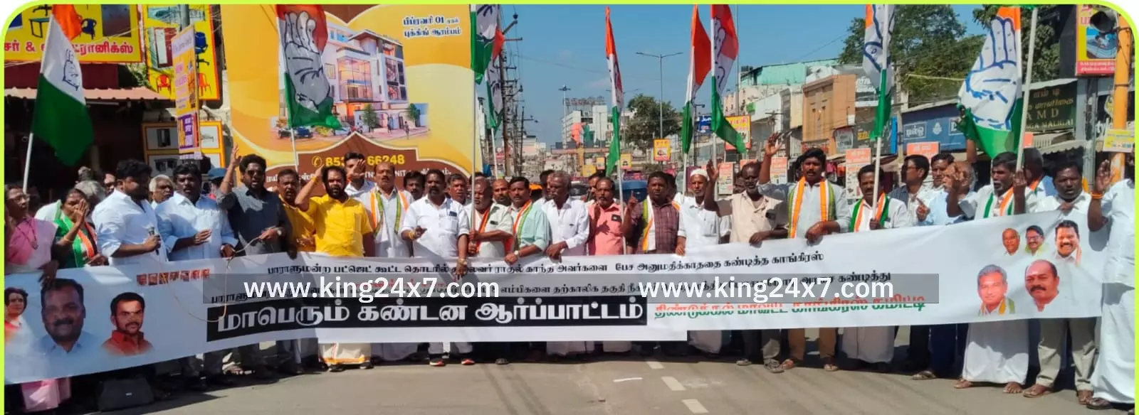 திண்டுக்கல் மாவட்ட காங்கிரஸ் கமிட்டி சார்பாக பாராளுமன்ற பட்ஜெட் கூட்டத்தொடரில் எதிர்க்கட்சித் தலைவர் ராகுல்காந்தி அவர்களைப் பேச அனுமதிக்காததை கண்டித்தும், காங்கிரஸ் கட்சி பாராளுமன்ற உறுப்பினர் மாணிக்கம் தாகூர் உட்பட 8 பாராளுமன்ற உறுப்பினர்களை தற்காலிக தகுதி நீக்கம் செய்த மத்திய அரசை கண்டித்து கண்டன ஆர்ப்பாட்டம் நடைபெற்றது