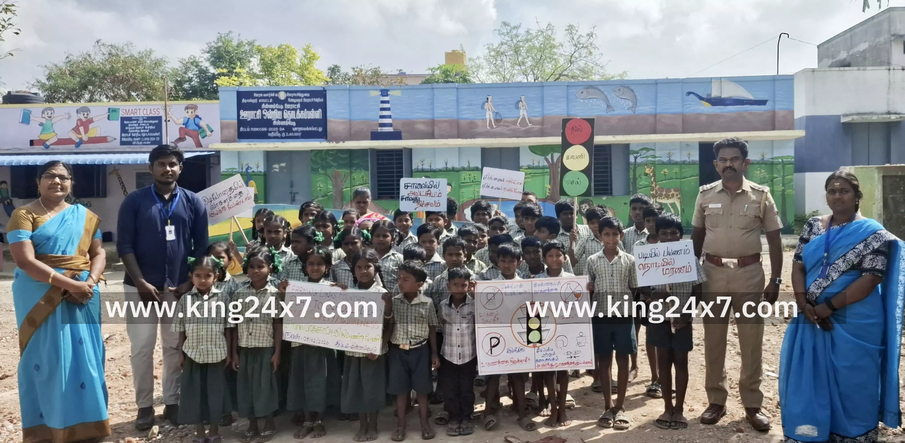 அரசு பள்ளி மாணவர்களுக்கு சாலை பாதுகாப்பு விழிப்புணர்வு