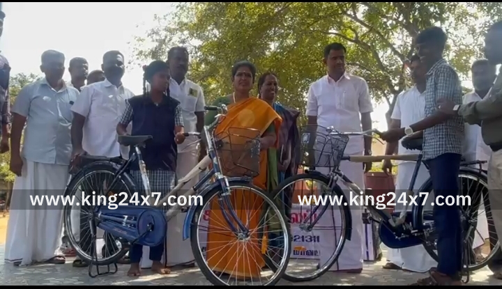 பாலவிடுதியில் விலையில்லா மிதிவண்டிகளை வழங்கி வாழ்த்து தெரிவித்தார் எம்எல்ஏ சிவகாமசுந்தரி.