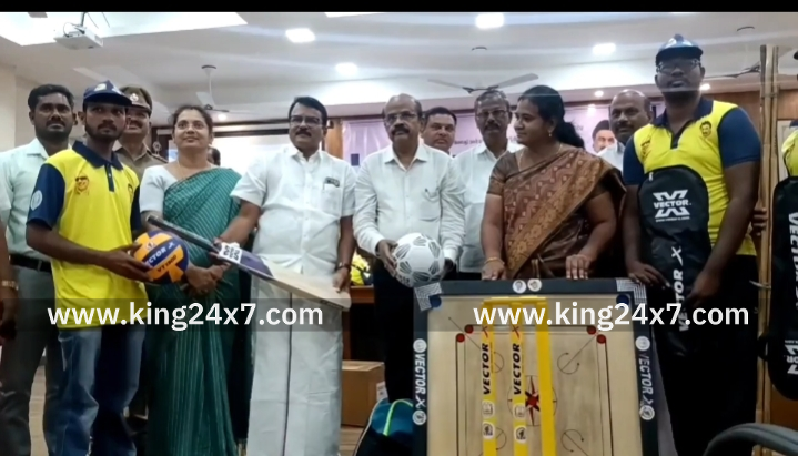 கரூரில் கலைஞர் விளையாட்டு உபகரணங்கள் வழங்கும் திட்டத்தின் கீழ் இளைஞர்களுக்கு விளையாட்டு உபகரணங்களை வழங்கினார் மாவட்ட ஆட்சியர் தங்கவேல். விளையாட்டுத்துறையில் இளைஞர்களை ஊக்குவிக்கும் விதமாக பல்வேறு விளையாட்டுகள் தொடர்பான உபகரணங்கள் தமிழகம் முழுவதும் தமிழக அரசின் சார்பில் வழங்கப்பட்டு வருகிறது. இதற்காக இளைஞர் நலன் மற்றும் விளையாட்டு மேம்பாட்டு துறை சார்பில் கலைஞர் விளையாட்டு உபகரணங்கள் வழங்கும் திட்டத்தின் கீழ் இளைஞர்களுக்கு விளையாட்டு உபகரணங்கள் மாவட்டம் தோறும் வழங்கப்பட்டு வருகிறது. இதன் தொடர்ச்சியாக இன்று கரூர் மாவட்ட ஆட்சியர் அலுவலக கூட்டரங்கில் மாவட்ட ஆட்சியர் தங்கவேல் தலைமையில் இளைஞர்களுக்கு விளையாட்டு உபகரணங்கள் வழங்கும் நிகழ்ச்சி நடைபெற்றது. இந்த நிகழ்ச்சியில் கரூர் மாநகராட்சி மேயர் கவிதா கணேசன், துணை மேயர் தாரணி சரவணன், அரவக்குறிச்சி சட்டமன்ற உறுப்பினர் இளங்கோ, விளையாட்டுத்துறை அதிகாரிகள், விளையாட்டு துறையில் பங்கேற்று வரும் மாணவ-மாணவியர் என ஏராளமானோர் கலந்து கொண்டனர். இந்த நிகழ்ச்சியில் மாணாக்கர்களுக்கு கிரிக்கெட் மட்டை, ஸ்டெம்ப், டீ சர்ட், கிரிக்கெட் பந்து, வாலிபால் விளையாடுவதற்கான பந்து, கேரம் போர்டு உள்ளிட்ட 30 வகையான விளையாட்டு உபகரணங்களை வழங்கி மாவட்ட ஆட்சியர் தங்கவேல் வாழ்த்து தெரிவித்தார். விளையாட்டு உபகரணங்களை பெற்றுக் கொண்ட மாணாக்கர்கள் தமிழக அரசுக்கும் மாவட்ட ஆட்சியருக்கும் நன்றி தெரிவித்தனர்.