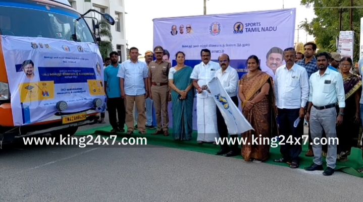 கரூரில் கலைஞர் விளையாட்டு உபகரணங்கள் வழங்கும் திட்டத்தின் கீழ் இளைஞர்களுக்கு விளையாட்டு உபகரணங்களை வழங்கினார் மாவட்ட ஆட்சியர் தங்கவேல்.
