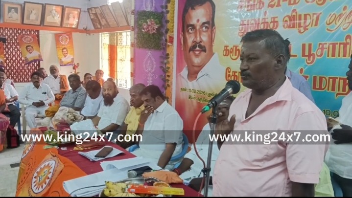 வருகிற சட்டமன்றத் தேர்தலில் யாருக்கு வாக்களிப்பது என்பது குறித்து மார்ச் ஒன்றாம் தேதி முடிவு செய்யப்படும். கோவில் பூசாரிகள் நலச் சங்க மாநில தலைவர் வாசு கரூரில் பேட்டி. கோவில் பூசாரிகள் நலச்சங்க கரூர் மாவட்ட மாநாடு மற்றும் 21 ஆம் ஆண்டு துவக்க விழா கரூரில் உள்ள தனியார் கூட்டரங்கில் மாநில தலைவர் வாசு தலைமையில் நடைபெற்றது. இந்த மாநாட்டில் மாநில செயலாளர் சங்கர் மாநில பொருளாளர் சுந்தரம் மாநில துணைத்தலைவர் கணேசன் உள்ளிட்ட பல்வேறு மாவட்டங்களை சேர்ந்த மண்டல தலைவர்கள் மாவட்ட செயலாளர்கள், பொருளாளர்கள், சங்க நிர்வாகிகள், உறுப்பினர்கள் என ஏராளமானோர் கலந்து கொண்டனர். நடைபெற்ற இந்த மாநாட்டில் சங்க வளர்ச்சிக்காக மேற்கொள்ளப்பட்ட 14 தீர்மானங்கள் நிறைவேற்றப்பட்டது. நிகழ்ச்சியின் நிறைவில் செய்தியாளர்களை சந்தித்த மாநில தலைவர் வாசு, இன்று கரூரில் கோவில் பூசாரிகள் நலச் சங்க மாநாடு நடைபெற்று வருகிறது. இதே போல தமிழகம் முழுவதும் உள்ள கோவில் பூசாரிகள் நல சங்கம் சார்பாக மாநாடு நடத்தி பூசாரிகளிடம் கருத்து கேட்கும் பணி நடைபெற்று வருகிறது. தற்போது தமிழக அரசு பல்வேறு நலத்திட்டங்களை பூசாரிகளுக்கு வழங்கி வந்த போதும், கிராம கோவில் பூசாரி நலவாரியத்திற்காக ஒன்பது பேர் அலுவல் சாரா உறுப்பினராக பொறுப்பேற்று ஐந்து ஆண்டுகள் ஆகியும் இன்னும் நடைமுறைப்படுத்த படவில்லை. தற்போது ஒரு கால பூஜை திட்டத்தின் கீழ் பூசாரிகளுக்கு ரூபாய் 1500 வழங்கப்படுவதை ரூ.6000-ம் ஆக உயர்த்தப்பட வேண்டும். கிராமப்புற பூசாரிகளின் ஓய்வூதியம் 4000 வழங்கப்படுவதை 6000 ஆக உயர்த்தி வழங்க வேண்டும்.பூசாரி இறந்து விட்டால் அவரது மனைவிக்கு பாதி தொகை வழங்க வேண்டும். திருக்கோவில் நிலங்களில் வசித்து வரும் பூசாரிகளுக்கு நிபந்தனையின் பேரில் பட்டா வழங்க வேண்டும். கோவிலுக்கு தானமாக வழங்கப்படும் மாடுகளை பூசாரிக்கு வழங்க வேண்டும். அனைத்து பூசாரிகளுக்கும் மாத ஊதியம் வழங்க வேண்டும். இந்து சமய அறநிலையத்துறையின் கட்டுப்பாட்டில் பணியாற்றக்கூடிய பூசாரிகளுக்கு துறை ரீதியான ஓய்வூதியம் வழங்க வேண்டும். தமிழகத்தில் இருக்கக்கூடிய 6 லட்சம் பூசாரிகள் வரும் 2026 சட்டமன்றத் தேர்தலில் யாருக்கு வாக்களிப்பது என்பதை முடிவு செய்ய சேலத்தில் மார்ச் ஒன்றாம் தேதி நடைபெறும் மாநில பொதுக்குழுவில் முடிவு செய்யப்படும் என தெரிவித்தார்.
