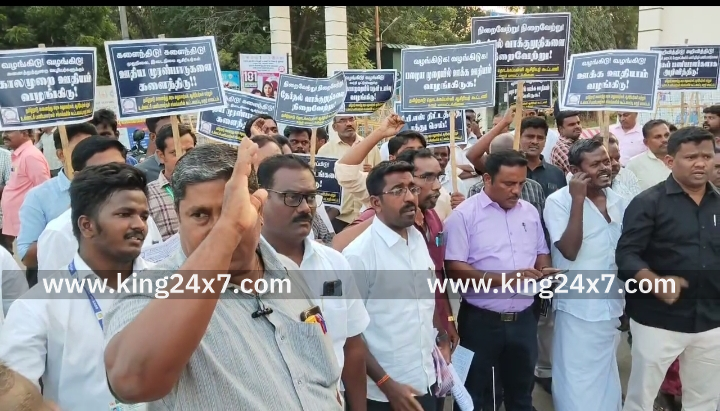 கரூரில் 10-அம்ச கோரிக்கைகளை வலியுறுத்தி போட்டோ-ஜியோ அமைப்பின் சார்பில் கோரிக்கை ஆர்ப்பாட்டம்.