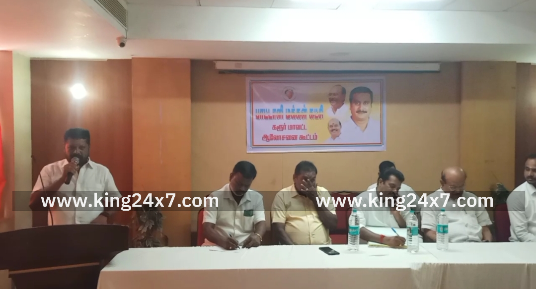 கரூர்-அன்புமணி ராமதாஸ் கரூரில் மேற்கொள்ள உள்ள நடைப்பயணம் நிகழ்ச்சிக்கு -10,000- பேரை திரட்ட முடிவு. பாட்டாளி மக்கள் கட்சியின் கரூர் கிழக்கு மற்றும் மேற்கு மாவட்ட பொறுப்பாளர்கள் ஆலோசனை கூட்டம் கரூரில் உள்ள தனியார் கூட்டரங்கில் நடைபெற்றது. மேற்கு மாவட்ட செயலாளர் சுரேஷ் தலைமையில் நடைபெற்ற இந்த கூட்டத்தில் கிழக்கு மாவட்ட செயலாளர் பிரேம்குமார் நகர செயலாளர் ராக்கி முருகேசன் வன்னியர் சங்க மாவட்ட செயலாளர் பசுபதி முன்னாள் எம்எல்ஏ மலையப்பசாமி உள்ளிட்டோர் கலந்துகொண்ட கூட்டத்தில் வன்னியர் சங்க மாநில செயலாளரும் முன்னாள் எம்எல்ஏவுமான கார்த்தி சிறப்பு அழைப்பாளராக கலந்து கொண்டார். கூட்டத்தின் நிறைவில் செய்தியாளர்களை சந்தித்த கார்த்தி இந்த மாதத்தின் இறுதியில் நாமக்கல் மற்றும் கரூரில் நடை பயணம் மேற்கொள்ள உள்ளார்.அதற்கான ஏற்பாடுகளை செய்யவும் வீடுகள்தோறும் திண்ணை பிரச்சாரம் செய்து உறுப்பினர் சேர்க்கை தீவிர படுத்த வேண்டும் எனவும் நடைப்பயணம் நிகழ்ச்சியில் பத்தாயிரம் பேர் கலந்து கொள்ள ஏற்பாடு செய்ய இந்த கூட்டத்தில் முடிவுசெய்துள்ளதாக தெரிவித்தார்.