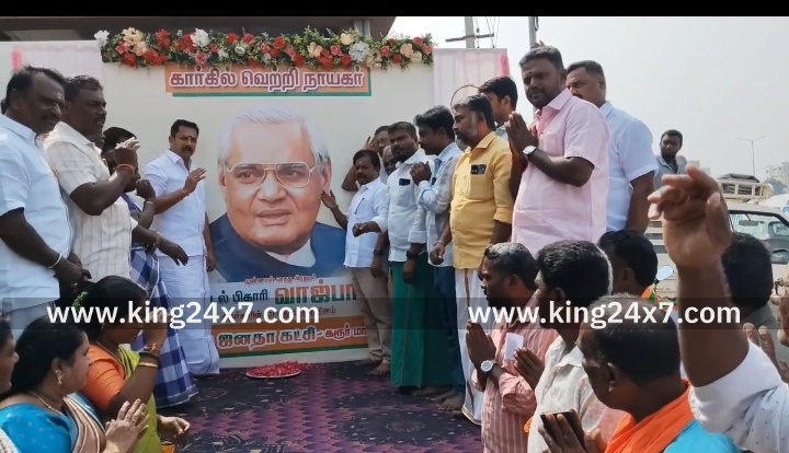 கரூரில்,முன்னாள் பாரத பிரதமர் அடல் பிகாரி வாஜ்பாயின் 101 வது பிறந்த நாளை கொண்டாடிய பாரதிய ஜனதா கட்சியினர்.