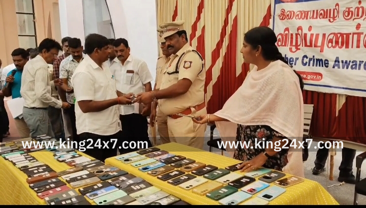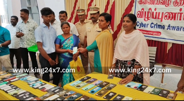 கரூர் மாவட்டத்தில் காணாமல் போன 136 செல்போன்கள் மற்றும் சைபர் குற்றங்களால் இழந்த ரூ.97,33,543-ஐ மீட்டு உரியவர்களிடம் ஒப்படைத்த காவல்துறையினர். கரூர் மாவட்டத்தில் சைபர் கிரைம் குற்றங்கள் மற்றும் தொலைந்த செல்போன்களை கண்டறிய சைபர் க்ரைம் போலீஸார் தீவிர முயற்சி எடுத்து வருகின்றனர். அதேபோல, ஆன்லைன் வேலை, ஆன் லைன் முதலீடு, டிஜிட்டல் அரெஸ்ட் போன்ற பல்வேறு முறைகளில பணத்தை இழந்த 15 நபர்கள் புகார் அளித்திருந்தனர். இதனடிப்படையிலும் சைபர் க்ரைம் போலீஸார் தீவிர விசாரணை நடத்தி னர். இதில் 136 செல்போன்கள், சைபர் குற்றங்கள் மூலம் இழந்த 97,33,543 ரூபாயை மீட்டனர். இன்று மாவட்ட காவல் கண்காணிப்பாளர் அலுவலகத்தில் நடைபெற்ற நிகழ்ச்சியில் சைபர் கிரைம் கூடுதல் காவல் கண்காணிப்பாளர் பிரபாகரன் மீட்கப்பட்ட செல்போன்களையும் பணத்தையும் உரிய நபர்களிடம் ஒப்படைத்து பேசுகையில், சைபர் குற்றங்களில் டிஜிட்டல் அரஸ்ட் என்ற பேரில் பலர் இப்பொழுது பணத்தை பறித்து வருவதாகவும், டிஜிட்டல் அரஸ்ட் என்பது உலகத்திலேயே எங்கும் கிடையாது எனவும், அவ்வாறு உங்களை தொடர்பு கொள்ளும் நபர்கள் குறித்த உடனடியாக சைபர் க்ரைம் போலீஸாரை தொடர்பு கொண்டு தகவல் அளிக்கும்படி கேட்டுக் கொண்டார்.