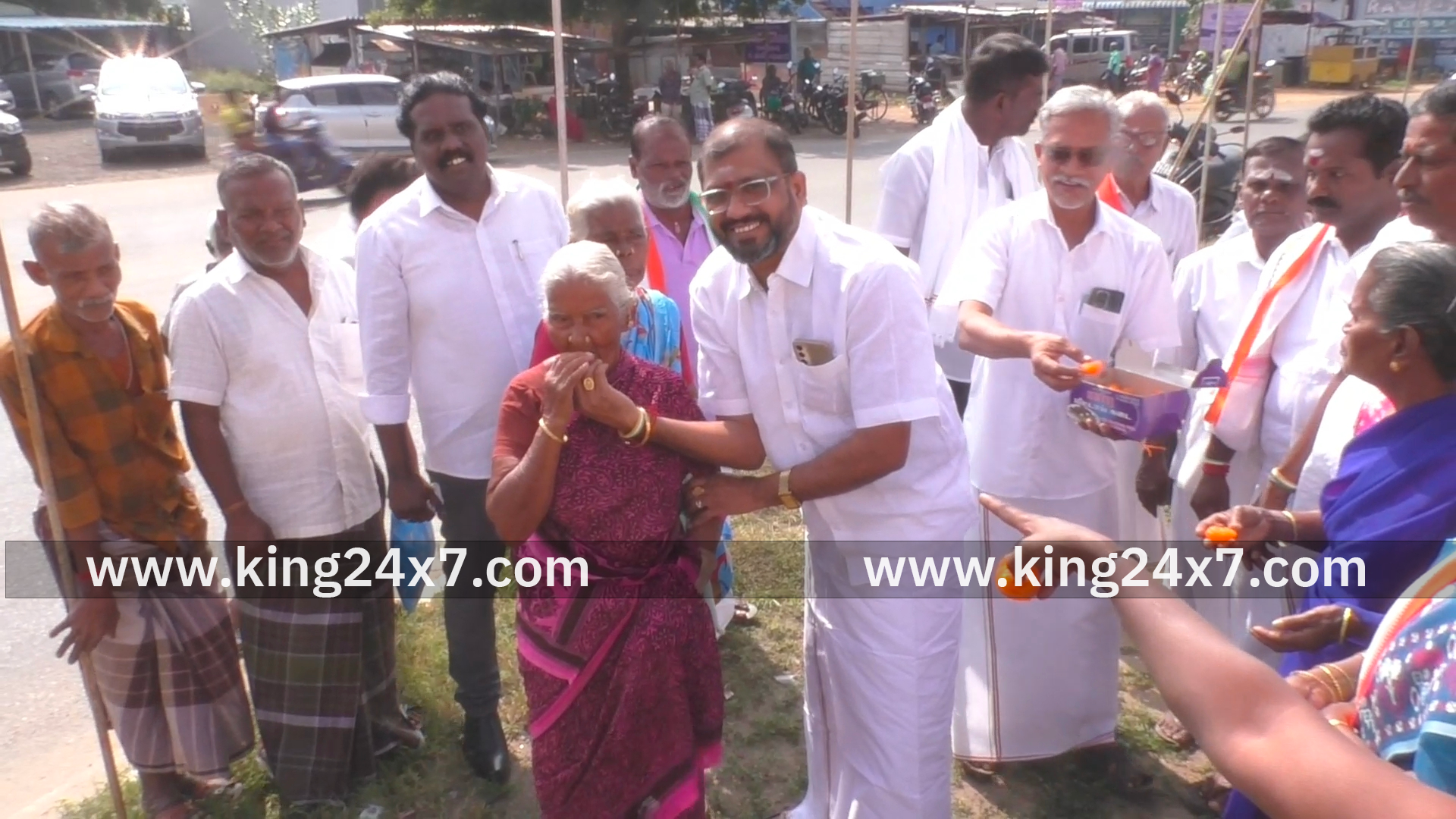 மணப்பாறையில் காங்கிரஸ் கட்சியின் 141 ம் ஆண்டு துவக்கவிழாவை கேக் வெட்டிகொண்டாடிய காங்கிரஸ் கட்சியினர்.