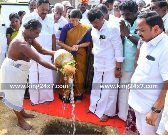 தமிழக கைத்தறி மற்றும் துணிநூல் துறை அமைச்சர் ஆர்.காந்தி இராணிப்பேட்டை மாவட்டம், அரக்கோணம் வட்டம், தக்கோலம் பேரூராட்சி தண்டலம் பேரம்பாக்கம் தக்கோலம் அரிகிலபாடி மாநில நெடுஞ்சாலை 50பி கி.மீ 31/6ல் விருத்தசீர ஆற்றின் குறுக்கே ரூபாய் 17.65 கோடி மதிப்பீட்டில் உயர்மட்ட மேம்பாலம் அமைக்கும் பணிக்கு பூமி பூஜை;