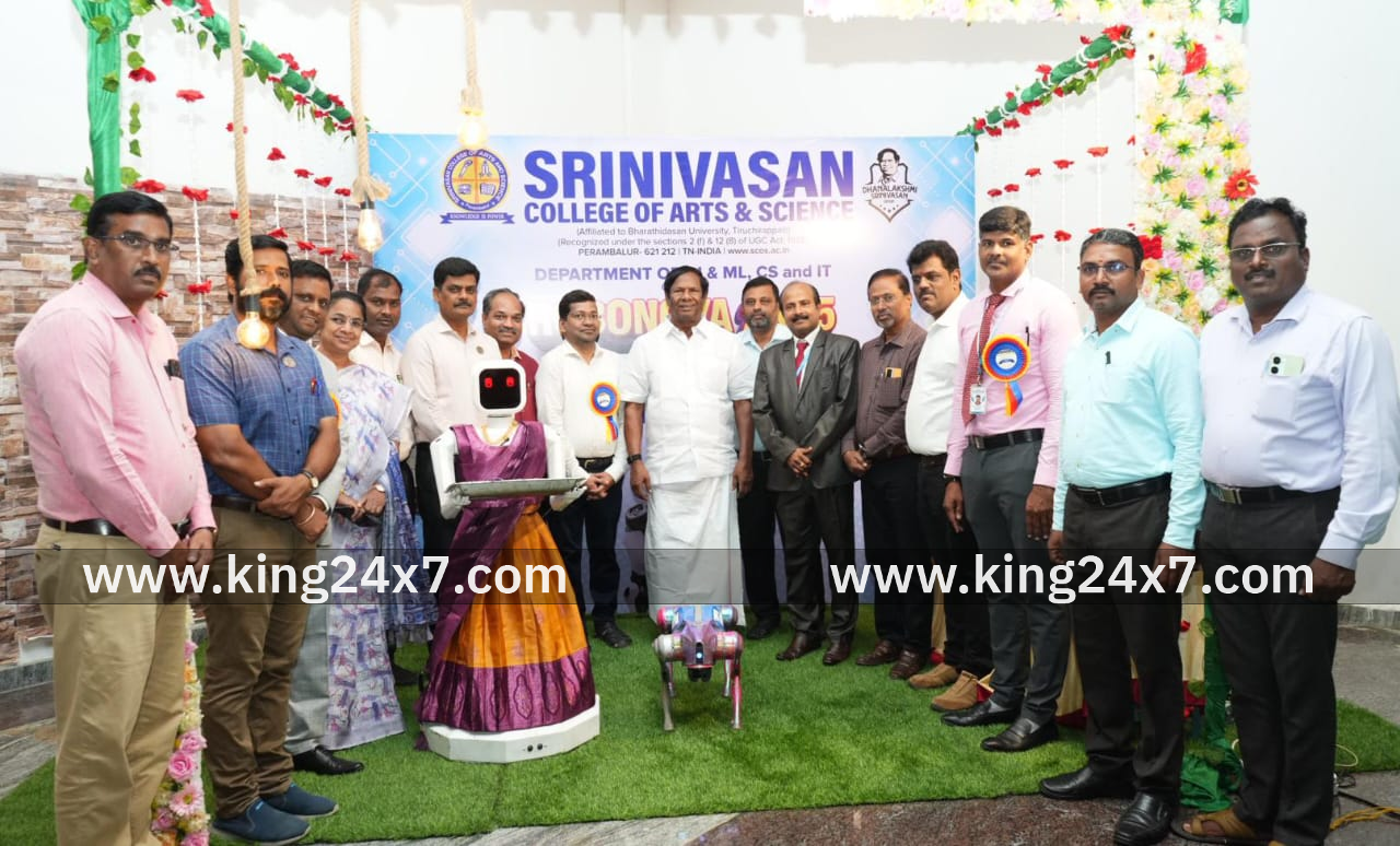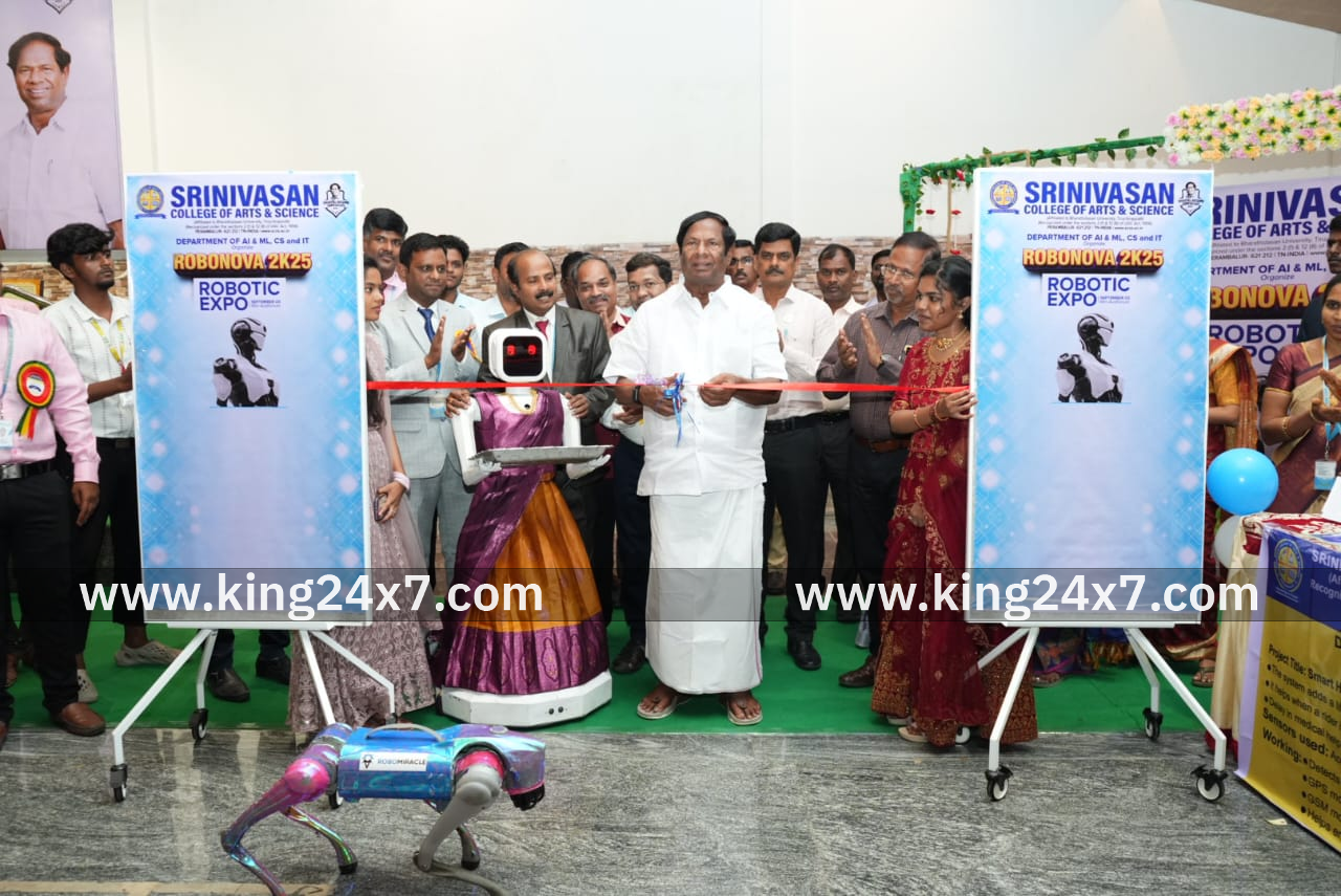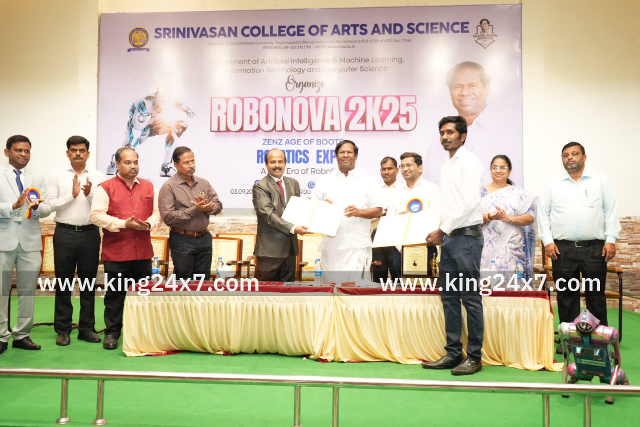 பெரம்பலூர் சீனிவாசன் கலை மற்றும் அறிவியல் ரோபோ நோவா – 2025 என்னும் தலைப்பில் ரோபோடிக் கண்காட்சி பெரம்பலூர் சீனிவாசன் கலை மற்றும் அறிவியல் கல்லூரியில் செயற்கை நுண்ணறிவு மற்றும் இயந்திர கற்றல், தகவல்தொழில் நுட்பவியல், கணினி அறிவியல் துறைச் சார்பாக ரோபோ நோவா – 2025 என்னும் தலைப்பில் ரோபோடிக் கண்காட்சி 03.09.2025 அன்று காலை 10.00 மணியளவில் நடைபெற்றது. இவ்விழாவினைத் தனலட்சுமி சீனிவாசன் பல்கலைக்கழகத்தின் மாண்பமை வேந்தர் உயர்திரு அ. சீனிவாசன் ஐயா அவர்கள் தலைமை தாங்கினார். அவர்கள் வருகை புரியும் போது நிலா என்று பெயர் சூட்டப்பட்ட இயந்திர மனித உருவ பெண் பூங்கொத்து கொடுத்து வரவேற்றது. ரோபோடிக் கண்காட்சியினை ரிப்பன் வெட்டி துவக்கி வைத்தார்கள். இவ்விழாவின் சிறப்பு விருந்தினராக திருச்சி தேசிய தொழில் நுட்பக் கழகம், பேராசிரியர் ஜி. ஆர் கங்;காதரன் அவர்கள் கலந்துக் கொண்டு, வளர்ந்து வரும் துறைகளுள் மிக முக்கியமான துறை எதுவென்றால் செயற்கை நுண்ணறிவுத் துறை. வருங்காலத்தில் அதன் முக்கியத்துவம் குறித்தும், அதன் சிறப்புகள் குறித்து மாணவ, மாணவிகளுக்கு விளக்கமளித்தார். இவ்விழாவில் கோயம்புத்தூரைச் சேர்ந்த ரோபோ மிராக்கிள் டெக்னாலஜிஸ் பிரைவேட் லிமிடெட் நிறுவனத்துடன் சீனிவாசன் கலை மற்றும் அறிவியல் கல்லூரியின் செயற்கை நுண்ணறிவு மற்றும் இயந்திர கற்றல், தகவல்தொழில் நுட்பவியல், கணினி அறிவியல் துறை புரிந்துணர்வு ஒப்பந்தம் செய்துகொண்டார்கள். கல்லூரியின் முதல்வர் முனைவர் நா. வெற்றிவேலன் அவர்கள் தனலட்சுமி சீனிவாசன் பல்கலைக்கழகத்தின் மாண்பமை வேந்தர் உயர்திரு அ. சீனிவாசன் ஐயா அவர்கள் முன்னிலையில் கையெழுத்திட்டார்கள். இதன் மூலம் பல்வேறு வேலைகளைச் செய்யும் ரோபோவை மாணவர்கள் உற்பத்தி செய்ய பயிற்சி அளிக்கப்படும். இதன் மூலம் மாணவர்கள் புதுமைகளைக் கற்றுக் கொள்ளவும், புதுமைகளை உருவாக்கவும், சரியான தளத்தை அமைத்து தரும். இந்த கண்காட்சியில் தன்னாட்சி பெற்ற தனலட்சுமி சீனிவாசன் மகளிர் கலை மற்றும் அறிவியல் கல்லூரி, தன்னாட்சி பெற்ற தனலட்சுமி சீனிவாசன் பொறியியல் கல்லூரி, தனலட்சுமி சீனிவாசன் பல்கலைக்கழகத்தின் ஸ்கூல் ஆப் இன்ஜினியரிங் டெக்னாலஜியில் இருந்து மாணவ, மாணவிகள் கலந்துக் கொண்டு 10-க்கும் மேற்பட்ட ரோபோக்கள். தானியங்கி இயந்திரங்கள் மற்றும் அவற்றின் பயன்பாடுகள், தொழில் நுட்பங்கள், புதிய கண்டுபிடிப்புகள் போன்ற புதுமைகளைக் காட்சிப்படுத்தினார்கள். இந்த கண்காட்சியில் அதி நவீன தொழில் நட்பத்துடன் கூடிய விபத்து கண்டறிதல் குறித்த ஸ்மார்ட் ஹெல்மெட், பார்வைத் திறன் குறைவான மாற்று திறனாளிகளுக்கு ஸ்மார்ட் பிளைன்ட் ஸ்டிக், உடல் நிற
