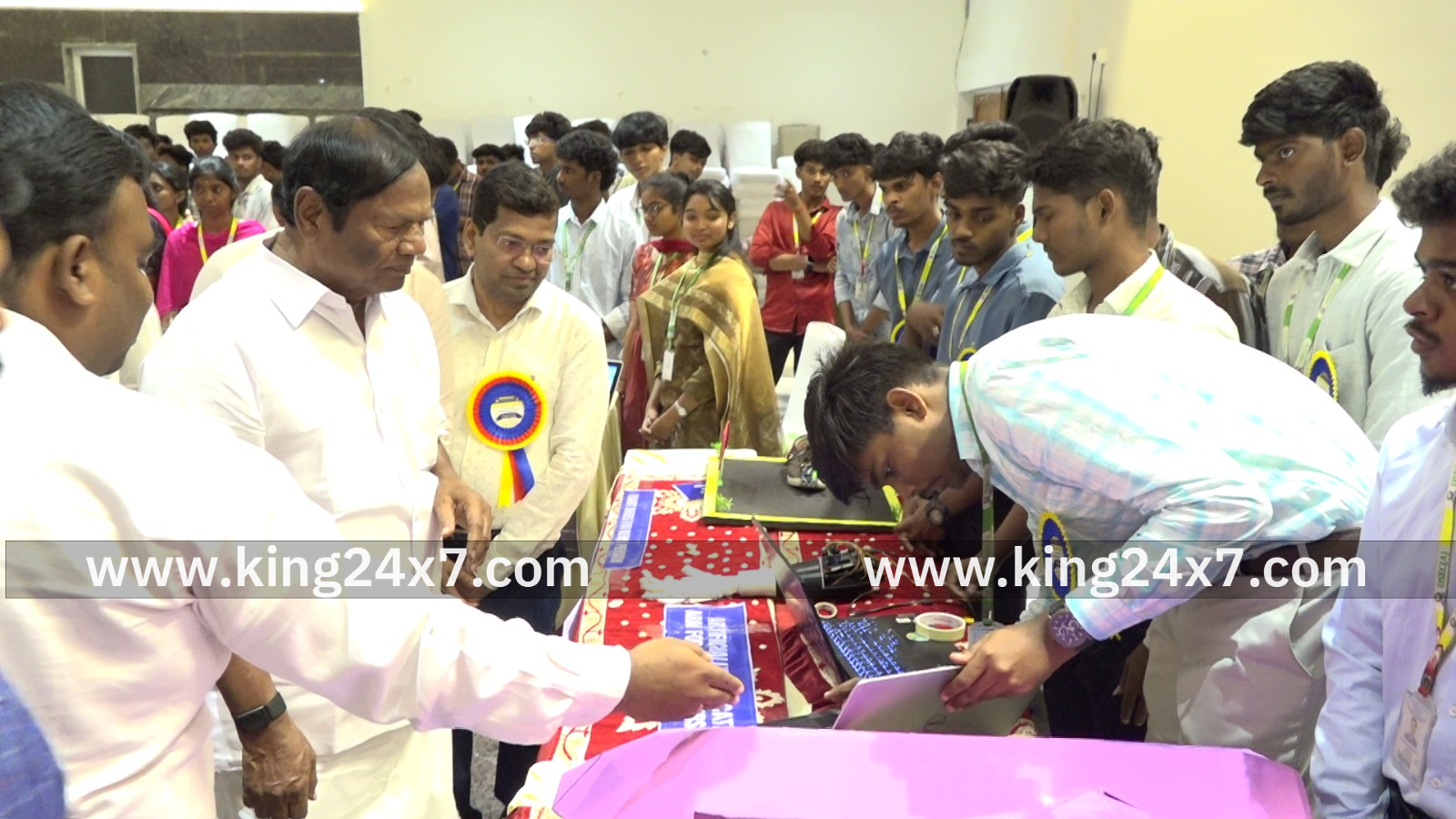 நிலா என்று பெயர் சூட்டப்பட்ட இயந்திர மனித உருவ பெண் பூங்கொத்து கொடுத்து வரவேற்றது. ரோபோடிக் கண்காட்சியினை ரிப்பன் வெட்டி துவக்கி வைத்தார்கள்.;