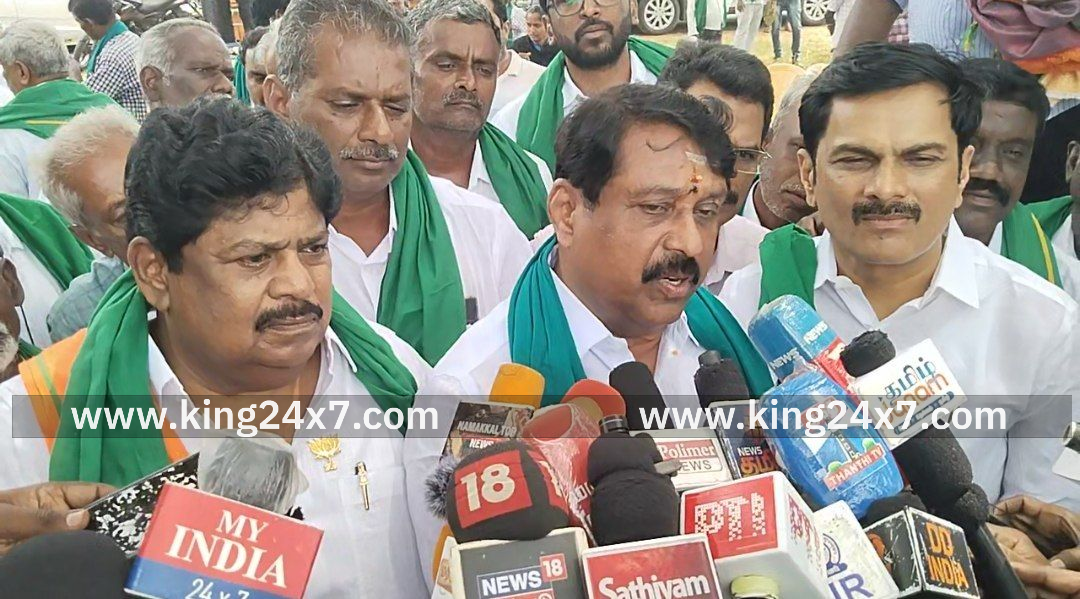 நாமக்கல் மாவட்டம், ஊனங்கல்பட்டி கிராமத்தில் தமிழகம் தலை நிமிர தமிழனின் பயணம் என்ற தலைப்பில் நடைபெற்ற கிராம சபை கூட்டம், விவசாயிகளுடன் சந்திப்பு நிகழ்ச்சியில் கலந்துகொண்டு பாஜக மாநிலத் தலைவர் நயினார் நாகேந்திரன் பேட்டி. நாமக்கல் மாவட்டத்தில் 2-வது நாளாக, தமிழக பாஜக தலைவர் நயினார் நாகேந்திரன், தமிழகம் தலை நிமிர தமிழனின் பயணம் மேற்கொண்டுள்ளார். அதன்படி, நாமக்கல் மாவட்டம் மோகனூர் வட்டம் ஊனங்கல்பட்டி பகுதியில், பாஜக சார்பில் கிராம சபை கூட்டம் மற்றும் விவசாயிகளோடு கலந்துரையாடல் நிகழ்ச்சி நடைபெற்றது. இதில், பாஜக மாநில தலைவர் நயினார் நாகேந்திரன், பாஜக நிர்வாகிகளுடன் கலந்துகொண்டு, இப்பகுதியைச் சேர்ந்த விவசாயிகளிடம் கலந்துரையாடினார். அப்போது, நாமக்கல் மாவட்டத்தைச் சேர்ந்த விவசாயிகள், வளையப்பட்டி பகுதியில் விளைநிலங்களில் சிப்காட் அமைக்க கூடாது, தமிழகத்தில் தேசிய வேளாண் பல்கலைக்கழகம் அமைக்க வேண்டும்.,இயற்கை வேளாண்மையை நாடு முழுவதும் பரவலாக்க வேண்டும்., பழைய மாவட்ட அரசு தலைமை மருத்துவமனையில் சிகிச்சை அளிக்க வேண்டும்.மரவள்ளி பயிருக்கு மரவள்ளி கிழங்கு உரிய விலை கண்ணுக்கு 4 ஆயிரம் ரூபாய் வழங்க வேண்டும்., மோகனூர் ரயில் நிலையத்தில் குறிப்பிட்ட ரயில்கள் நின்று செல்ல நடவடிக்கை எடுக்க வேண்டும்., 505 ஏக்கர் பரப்பளவில் உள்ள நாமக்கல் கால்நடை மருத்துவக் கல்லூரி மற்றும் ஆராய்ச்சி நிலைய வளாகத்தில் தமிழ்நாடு அரசு, தோல் பதனிடம் தொழிற்சாலை மற்றும் சிறைச்சாலை அமைக்க கூடாது., நாமக்கல் மாநகராட்சி, வடக்கால புதூர் பகுதியில் கழிவுநீர் கொட்டுவதை தடுக்க வேண்டும். என்பன உள்ளிட்ட பல்வேறு கோரிக்கைகளை பாஜக மாநிலத் தலைவர் நயினார் நாகேந்திரன்-இடம் எடுத்துக் கூறினர். மேலும் விவசாயிகள் இது குறித்து அளித்த கோரிக்கை மனுக்களையும் நைனார் நாகேந்திரன் பெற்றுக்கொண்டார். அப்போது விவசாயிகளிடம் பதில் அளித்து பேசிய நயினார் நாகேந்திரன், இப்பகுதியில் மக்களை சந்திக்கும் போது ஆட்சி மாற்றத்திற்கான அறிகுறியாக காணப்படுகிறது, வரும் சட்டமன்ற தேர்தலில் பாஜக அதிமுக கூட்டணி ஆட்சி அமைத்தால் நிச்சயம் நாமக்கல் அருகே விவசாய நிலங்களை கையகப்படுத்தி சிப்காட் அமைக்கும் திட்டம் கொண்டுவரப்படாது. திமுக அரசு தேர்தல் அறிக்கையில் கரும்புக்கு டன் ஒன்றுக்கு 4 ஆயிரம் ரூபாய் வழங்கப்படும் என்பதை கொடுக்காமல் இந்த அரசு ஏமாற்றி விட்டது., நாமக்கல் மாவட்டத்தில் சுமார் ஒரு லட்சத்திற்கும் மேற்பட்ட விவசாயிகள் வருடந்தோறும் தலா 6 ஆயிரம் ரூபாய் வழங்கப்படுகிறது.தமிழகத்தில், டாஸ்மாக் மூட வேண்டும், கள்ளை கொண்டு வர வேண்டும் என்பதில் பாஜகவுக்கும் ஒத்த கருத்து 