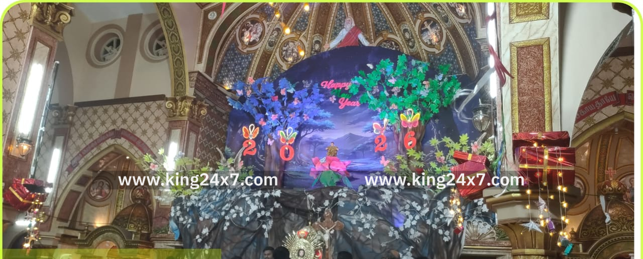திண்டுக்கல் மேட்டுப்பட்டி புனித வியாகுல அன்னை ஆலயத்தில் வண்ணத்துப்பூச்சி சுமந்து வருவது போன்று வித்தியாசமான முறையில் பிறந்த 2026 புத்தாண்டு