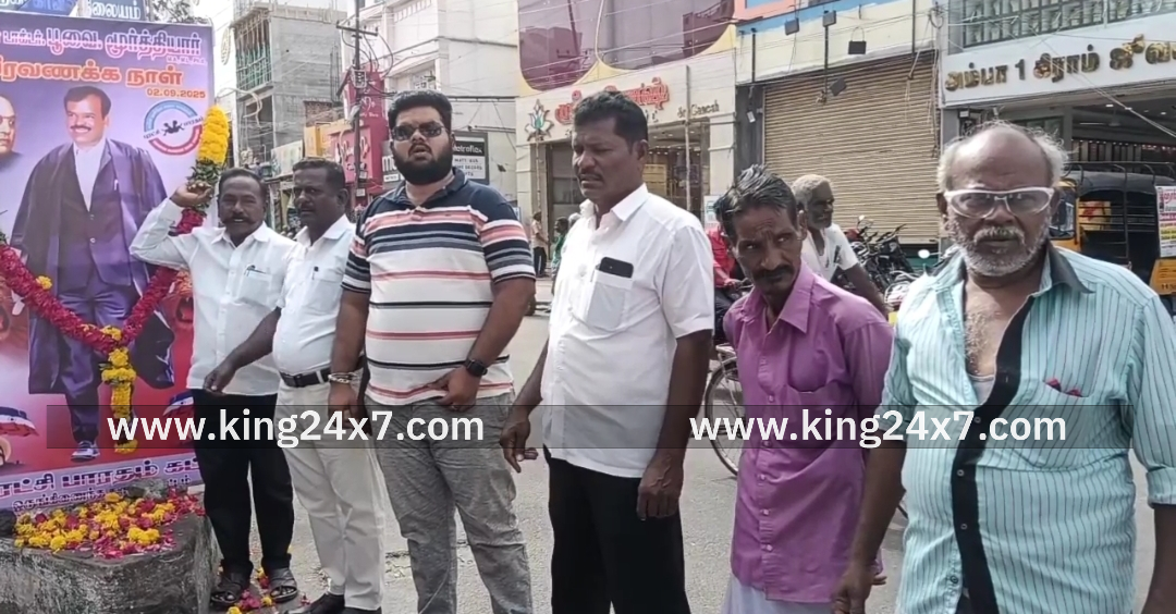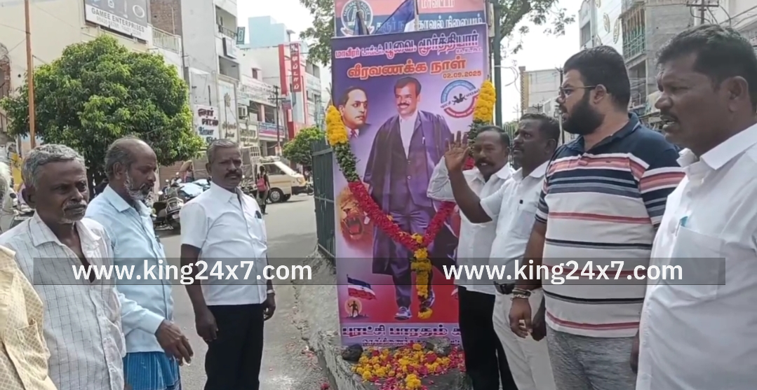 கரூர்- புரட்சி பாரதம் கட்சியின் நிறுவனர் 23 ஆம் ஆண்டு நினைவு தினம் மாலை அணிவித்து மரியாதை செலுத்திய கட்சியினர்.