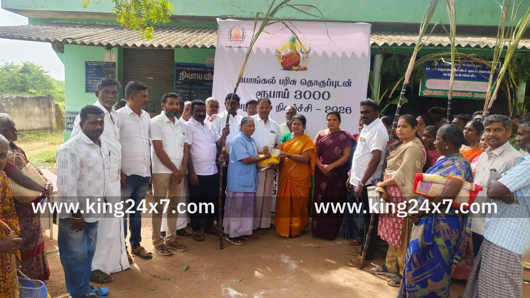 கிருஷ்ணராயபுரம் அருகே ரேஷன் அட்டைதாரர்களுக்கு ரூ.3 ஆயிரம் பொங்கல் பரிசு தொகுப்பு வழங்கல்