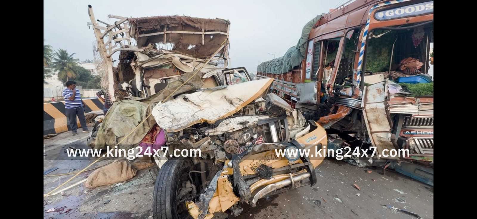 நாமக்கல்லில் லாரி மீது மினி சரக்கு வாகனம் மோதியதில் 3 பேர் பலி.