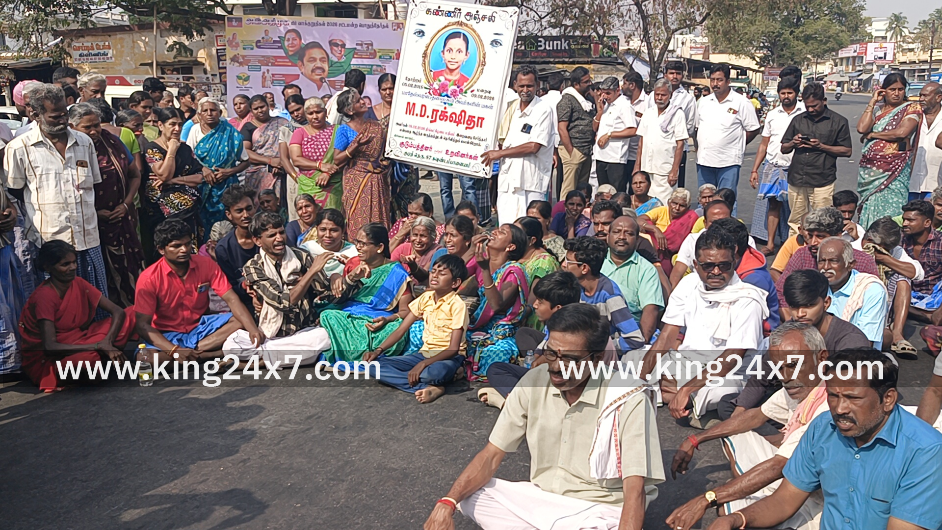 திருச்செங்கோடு அருகே உள்ள குமாரமங்கலம் பகுதியில் 3வது படிக்கும் மாணவி ரக்க்ஷிதா மர்மமான முறையில் இறந்ததை அடுத்து உறவினர்கள் சாலை மறியல் இழப்பீடு அரசு வேலை கேட்டு போராட்டம்