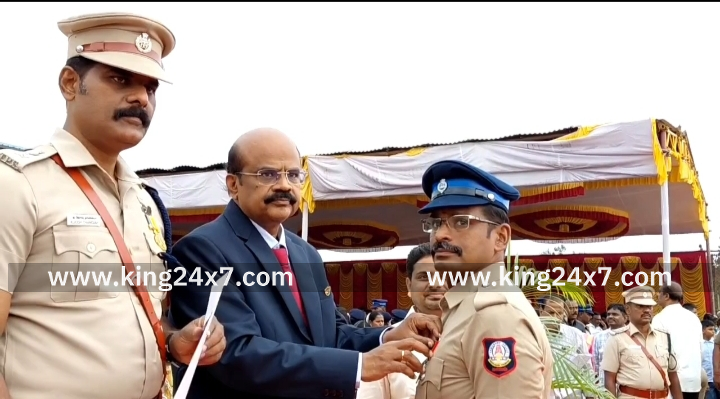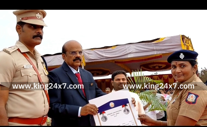கரூரில் நடைபெற்ற குடியரசு தின விழாவில் 34 பயனாளிகளுக்கு ரூபாய் சுமார் 55 லட்சம் மதிப்பீட்டில் நலத்திட்டங்களை வழங்கி வாழ்த்து தெரிவித்தார் மாவட்ட ஆட்சியர் தங்கவேல். நமது இந்திய நாடு சுதந்திரம் பெற்ற பிறகு 1950 ஆம் ஆண்டு ஜனவரி 26 ஆம் தேதி இந்தியாவில் இந்திய அரசியலமைப்புச் சட்டம் நடைமுறைக்கு வந்தது. இந்தியா ஒரு இறையாண்மை கொண்ட ஜனநாயக குடியரசு நாடாக மலர்ந்ததை நினைவு கூறும் வகையில் ஒவ்வொரு ஆண்டும் ஜனவரி 26 இல் குடியரசு தினம் கொண்டாடப்படுகிறது. இதன் அடிப்படையில் நாடு முழுவதும் இன்று குடியரசு தின கொண்டாட்டம் நடைபெற்று வருகிறது. இதன் தொடர்ச்சியாக கரூர் மாவட்ட விளையாட்டு மைதானத்தில் அமைக்கப்பட்டுள்ள கொடிக்கம்பத்தில் மாவட்ட ஆட்சியர் தங்கவேல்,மாவட்ட காவல் கண்காணிப்பாளர் ஜோஸ் தங்கையா ஆகியோர் தலைமையில் தேசியக்கொடியை பறக்கவிட்டு மரியாதை செய்தனர். இதனைத் தொடர்ந்து மூவர்ண கொடியில் உள்ள வண்ணங்களை பிரதிபலிக்கும் விதமாக மூவர்ண பலூன்களை பறக்க விட்டனர். இதனைத் தொடர்ந்து காவல்துறை மற்றும் ஊர்க்காவல் படை துறையினர் நடத்திய அணிவகுப்பை வாகனத்தில் சென்று பார்வையிட்டு ஏற்றுக் கொண்டனர். தொடர்ந்து தமிழக அரசின் பல்வேறு துறைகளின் கீழ் 34 பயனாளிகளுக்கு ரூபாய் சுமார் 55 லட்சம் மதிப்பீட்டில் நலத்திட்டங்களை வழங்கி வாழ்த்து தெரிவித்தார் மாவட்ட ஆட்சியர் தங்கவேல். மேலும் சிறப்பாக பணிபுரிந்த காவல்துறையினருக்கு பதக்கங்கள் அணிவித்து நற்சான்றிதழ்களை வழங்கி வாழ்த்து தெரிவித்தனர். நமது நமது நாட்டின் சுதந்திரத்திற்காக பாடுபட்ட தியாகிகள் மற்றும் அவரது வாரிசுகளுக்கு பொன்னாடை அணிவித்து கௌரவித்து பரிசு பொருட்கள் வழங்கி வாழ்த்து தெரிவித்தனர். இதனைத் தொடர்ந்து பள்ளி மாணவ-மாணவிகள் பங்கேற்ற பல்வேறு கலை நிகழ்ச்சிகள் நடைபெற்றது.