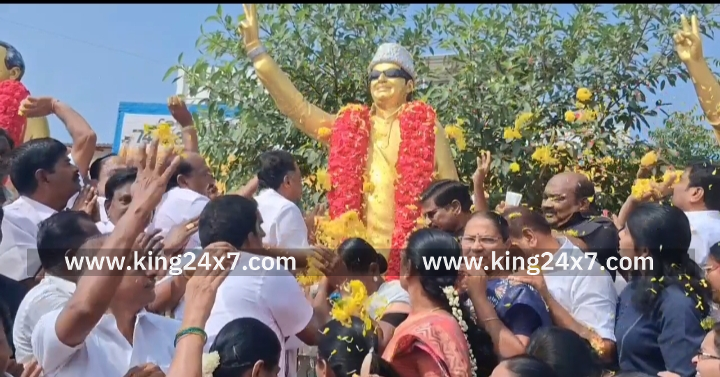 கரூரில் மறைந்த தமிழக முன்னாள் முதலமைச்சர் எம்ஜிஆர் 38வது நினைவு நாளை முன்னிட்டு அதிமுகவினர் புகழஞ்சலி. அதிமுக கட்சியின் நிறுவன தலைவரும் தமிழக முன்னாள் முதலமைச்சருமான எம் ஜி ஆர் அவர்களின் 38வது நினைவு நாளில் தமிழக முழுவதும் உள்ள அதிமுகவினர் மற்றும் எம் ஜி ஆர் ரசிகர்கள் இன்று அவரது திருவுருவ படத்திற்கு மலர் மாலை அணிவித்து புகழஞ்சலி செலுத்தி வருகின்றனர். இதன் தொடர்ச்சியாக கரூர் லைட் ஹவுஸ் கார்னர் பகுதியில் அமைக்கப்பட்டுள்ள எம்.ஜி.ஆர் முழு திருவுருவ சிலைக்கு கரூர் மாவட்ட அதிமுக செயலாளரும் முன்னாள் அமைச்சர்ருமான எம் ஆர் விஜயபாஸ்கர் தலைமையில் அதிமுகவினர் மலர் மாலை அணிவித்து மலர்கள் தூவி புகழஞ்சலி செலுத்தினார். இதனைத் தொடர்ந்து அதன் அருகாமையிலேயே அமைக்கப்பட்டுள்ள முன்னாள் முதலமைச்சர் அறிஞர் அண்ணா மற்றும் ஜெயலலிதா ஆகியோரின் திருவுருவ சிலை மாலை அணிவித்து மரியாதை செய்தனர். இந்த நிகழ்ச்சியில் கட்சியின் அவை தலைவர் திரு வி க, மாவட்ட பொருளாளர் கண்ணதாசன், இளைஞர் மற்றும் இளம் பெண்கள் பாசறை மாவட்ட செயலாளர் கமலக்கண்ணன்,எம்ஜிஆர் இளைஞர் அணி செயலாளர் தானேஸ் என்கிற முத்துக்குமார், நகர செயலாளர் நெடுஞ்செழியன், மகளிர் அணியினர் உள்ளிட்ட மாவட்ட அளவிலான கட்சி நிர்வாகிகள் தொண்டர்கள் என ஏராளமானோர் கலந்து கொண்டு மறைந்த தங்களது தலைவருக்கு இதய அஞ்சலியை செலுத்தினர். இதனைத் தொடர்ந்து கரூர் மனோரா கார்னர் அருகே அமைக்கப்பட்ட அலங்கார மேடையில் பொருத்தப்பட்டிருந்த எம்ஜிஆர் திருவுருவ படத்திற்கும் மலர் மாலை அணிவித்து தங்களது இதய அஞ்சலியை செலுத்தினர்.