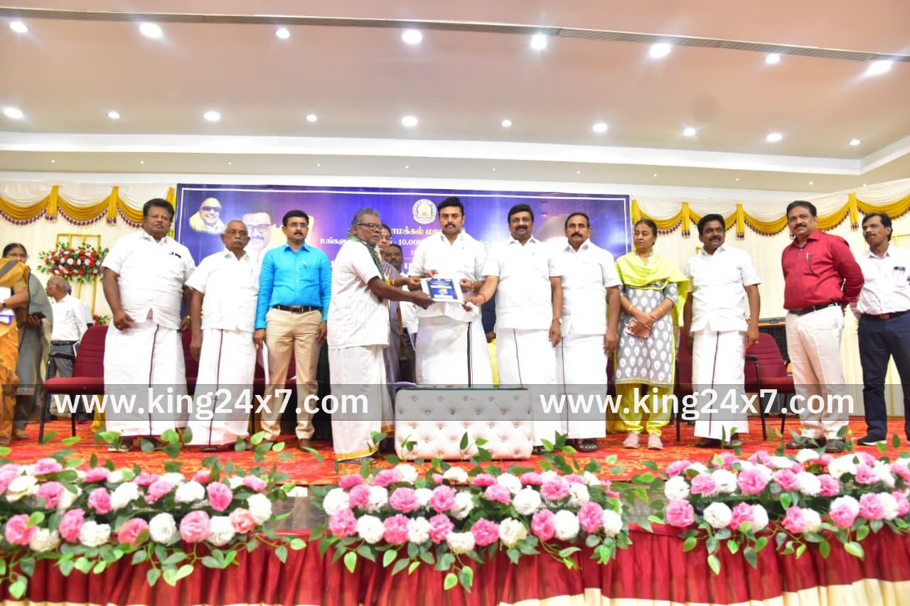தமிழ்நாடு முதலமைச்சர் விழுப்புரம் மாவட்டம், திண்டிவனம் வட்டம், திண்டிவனம் - செஞ்சி சாலை, கொள்ளார் கிராமம், சிப்காட் வளாகத்தில் நடைபெற்ற உங்களுடன் ஸ்டாலின் திட்டத்தின் 10 ஆயிரம் முகாம்கள் நிறைவு விழா மற்றும் அரசு நலத்திட்ட உதவிகள் வழங்கும் விழாவில் உங்களுடன் ஸ்டாலின் திட்டத்தின் 10,000 முகாம்கள் நலத்திட்டப் பயன்கள் மற்றும் 1.80 லட்சம் புதிய பயனாளிகளுக்கு சமூக பாதுகாப்புத் திட்டப் பயன்கள் வழங்கி, "என் கனவு என் எதிர்காலம்" என்ற இணைய தளத்தினை தொடங்கி வைத்து, விழுப்புரம் மாவட்டத்தின் முடிவுற்றப் பணிகளை திறந்து வைத்து, புதிய திட்டங்களுக்கு அடிக்கல் நாட்டி விழாப் பேருரை ஆற்றினார்கள்.;