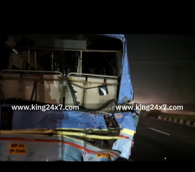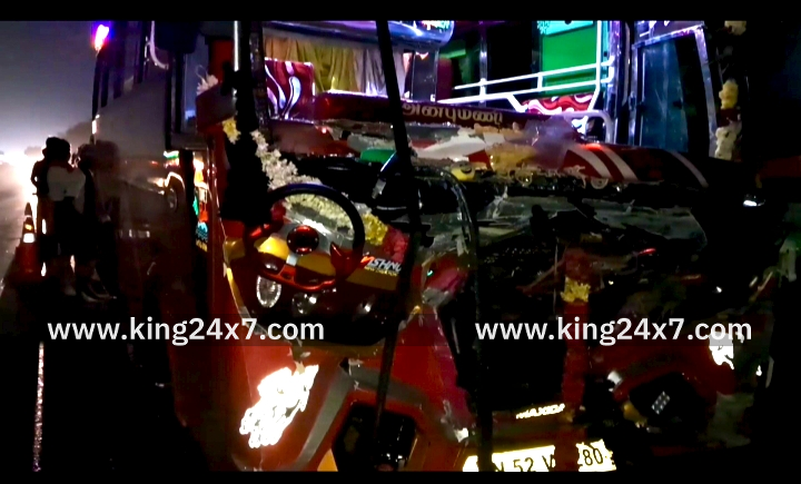 கரூர் அருகே சபரிமலைக்கு சென்ற ஐயப்ப பக்தர்கள் வேன் மீது அரசு பேருந்து மோதி விபத்து. 5 பேர் காயம்.