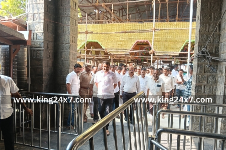 தமிழகத்தின் தென் திருப்பதி என அழைக்கப்படும் கல்யாண வெங்கடரமண சுவாமி திருக்கோவில் ரூபாய் 5 கோடி செலவில் புனரமைக்கப்பட்டு கும்பாபிஷேகம் நடைபெறும்-கரூரில் செந்தில் பாலாஜி பேட்டி. கரூர் அடுத்த தாந்தோணி மலை பகுதியில் அமர்ந்து அருள் பாலித்து வரும் தமிழகத்தின் தென் திருப்பதி என அழைக்கப்படும் அருள்மிகு கல்யாண வெங்கட ரமண சுவாமி திருக்கோவிலில் வருகிற ஜனவரி 28ஆம் தேதி கும்பாபிஷேக விழா நடைபெறுவதை முன்னிட்டு புனரமைக்கும் பணிகள் நடைபெற்று வருகிறது. இன்று கோவிலை மாவட்ட ஆட்சியர் தங்கவேல் தலைமையில் ஆய்வு செய்த முன்னாள் அமைச்சர் செந்தில் பாலாஜி ஆய்வின் நிறைவில் செய்தியாளர்களை சந்தித்தார். அப்போது இந்து அறநிலையத்துறை சார்பில் ரூபாய் ஐந்து கோடி மதிப்பீட்டில் அருள்மிகு வெங்கட ரமண சுவாமி திருக்கோவிலில் வரும் ஜனவரி 28ஆம் தேதி காலை 9 மணி முதல் 10:30 மணியிலான நேரத்தில் நடைபெறும் குடமுழுக்கு விழாவிற்காக கோவிலை புனரமைக்கும் பணிகள் இறுதிக்கட்டத்தில் உள்ளது. இதில் தேர், கோவில் கோபுரத்தில் தங்க முலாம் பூசுதல் உள்ளிட்ட பணிகளும் நடைபெற்று வருகிறது. இதற்காக விழா கமிட்டி அமைக்கப்பட்டு ரூபாய் 5 கோடி மதிப்பீட்டில் பணிகள் நடைபெற்று வருகிறது. நடைபெற உள்ள கும்பாபிஷேக விழாவிற்கு 50 ஆயிரத்திற்கும் மேற்பட்ட பக்தர்களுக்கு அன்னதானம் வழங்குவதற்கு சிறப்பான ஏற்பாடுகள் செய்யப்பட்டுள்ளது. மேலும் பக்தர்கள் மற்றும் பொதுமக்கள் தரிசனம் செய்வதற்கு ஏதுவாக கும்பாபிஷேக விழா அன்று கரூரில் உள்ள புதிய மற்றும் பழைய பேருந்து நிலையத்திலிருந்து தாந்தோணி மலை பகுதியில் உள்ள கோவில் வரை பேருந்துகள் இலவசமாக இயக்கப்படும் எனவும், விழாவிற்கு அறநிலையத்துறை அமைச்சர் அவர்களுக்கு அழைப்பிதழ் வழங்கப்பட்டுள்ளது எனவும், விழாவில் அவர் பங்கேற்க வாய்ப்பு உள்ளது எனவும் தெரிவித்தார். இந்த நிகழ்ச்சியில் அரவக்குறிச்சி எம்எல்ஏ இளங்கோ திருப்பணி குழு தலைவர் தியாகராஜன் உள்ளிட்டோர் கலந்து கொண்டனர்.