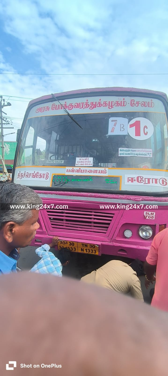 திருச்செங்கோடு புதிய பேருந்து நிலையம் காமராஜர் சிலை அருகே சாலையை கடக்க முயன்ற 61வயது பெண் மீது நகர பேருந்து மோதல் முன்பக்க சக்கரத்தில் சிக்கியதில் பெண்ணின் இரு கால்களும் நசுங்கி உயிருக்கு ஆபத்தான நிலையில் ஈரோட்டில் உள்ள தனியார் மருத்துவமனையில் அனுமதி சம்பவம் குறித்து நகர போலீசார் விசாரனை;