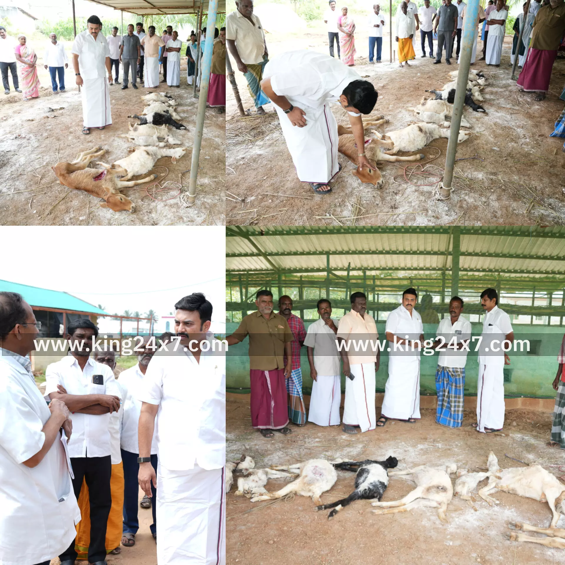 நாமக்கல் மாவட்டம் ராசிபுரம் அடுத்த பட்டணம் பேரூராட்சி முருகன் கோவில் பகுதியைச் சேர்ந்தவர் விவசாயி சிவக்குமார், 45. இவர் தனது கொட்டகையில் 8 ஆடுகள்; 7 பசு மாடுகள் மற்றும் பசு கன்று குட்டி ஒன்று வளர்த்து வருகிறார். இவர், அருகே உள்ள பகுதியில் ஆடுகளை மேய்த்து மாலை நேரத்தில் ஆடு, மாடுகளை கொட்டகையில் அடைப்பது வழக்கம். இந்நிலையில் நேற்று ஞாயிற்றுக்கிழமை இரவு 10 மணி அளவில் ஆடு மாடுகளை கொட்டகையில் அடைத்து அருகே உள்ள அவரது வீட்டிற்கு சென்றுள்ளார். நள்ளிரவு அந்த கொட்டகைக்குள் புகுந்த வெறிபிடித்த தெருநாய்கள் அங்கிருந்த ஆடுகளை கடித்து குதறியுள்ளது. இந்நிலையில், வழக்கம்போல் காலை கொட்டகையை பார்த்த போது, 8 ஆடு உயிரிழந்தது தெரிய வந்தது. மேலும், பசு கன்று குட்டி உடலில் காயம் ஏற்பட்டு உயிருக்கு போராடிக் கொண்டு இருந்தன. ஆடுகள் இறந்து கிடப்பதை கண்டு அதிர்ச்சி அடைந்து, கண்ணீர் விட்டு விவசாயி கதறி அழுதார். இதனை அறிந்த ஆதிதிராவிடர் மற்றும் பழங்குடியினர் துறை அமைச்சர் மருத்துவர் மா.மதிவேந்தன், அவர்கள் நேரில் சென்று விவசாயி சிவக்குமாரை சந்தித்து ஆறுதல் கூறினார். மேலும் அவர்கள் வாழ்வாதாரத்தை மேம்படுத்த அரசு அனைத்து உதவிகளும் செய்யும் என்றும் உறுதி அளித்தார். மேலும் இதற்கு உரிய இழப்பீடு பெற்று தருவதாகவும் அவர் தெரிவித்தார். இதில் பேரூர் கழக செயலாளர் பேரூர் துணை தலைவர் பொன். நல்லதம்பி மற்றும் கட்சி நிர்வாகிகள், அதிகாரிகள் உடன் இருந்தனர்.