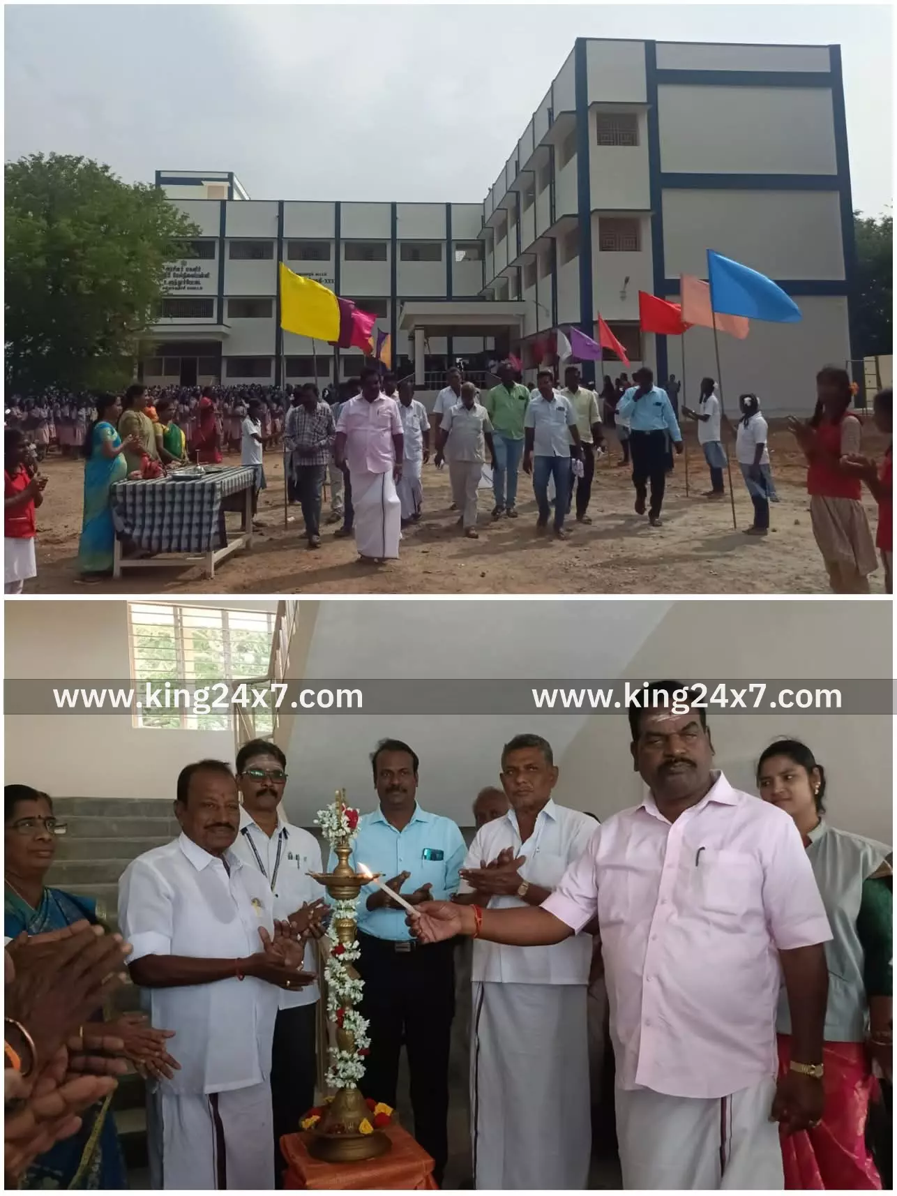 கள்ளக்குறிச்சி மாவட்டம்,உளுந்தூர்பேட்டை நகராட்சி அரசு பெண்கள் மாதிரி மேல்நிலைப் பள்ளியில் 5 கோடி மதிப்பீட்டில், புதிய கட்டிடத்தை குத்து விளக்கு ஏற்றி, மாணிக்கண்ணன் MLA திறந்து வைத்தார்..;