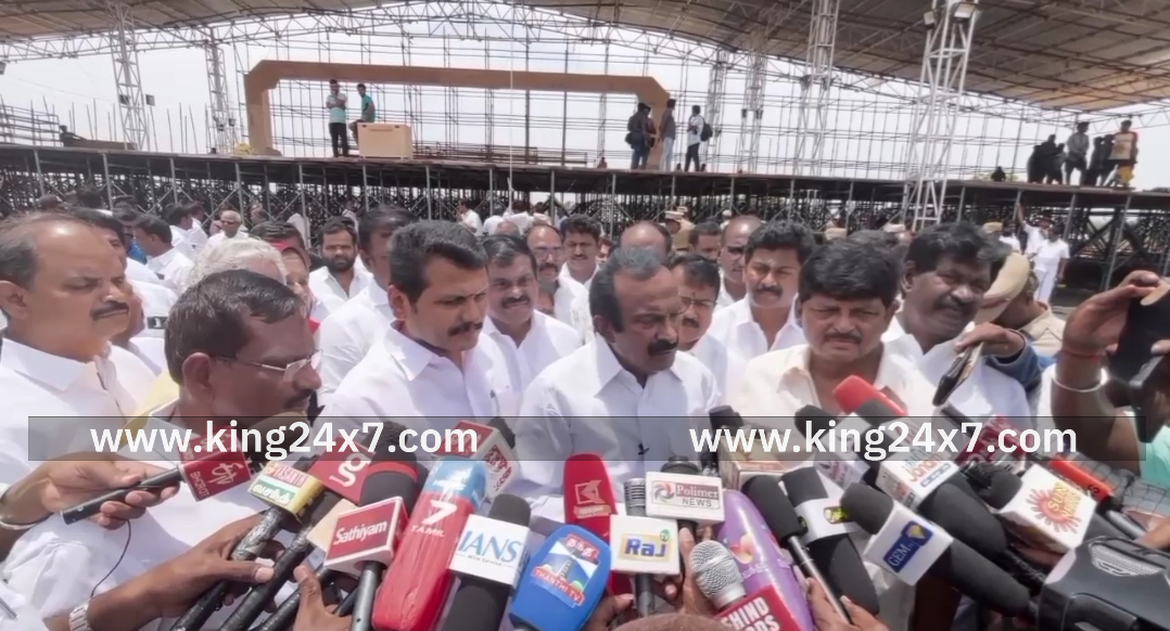 3-லட்சம் பேர் வரை பங்கேற்கும் முப்பெரும் விழா திமுகவிற்கு திருப்புமுனையாக அமையும்- அமைச்சர் முத்துசாமி கரூரில் பேட்டி. கரூரில் திமுக முப்பெரும் விழா நடைபெறும் இடத்தில் வீட்டு வசதி மற்றும் மதுவிலக்கு ஆய தீர்வு துறை அமைச்சர் முத்துசாமி இன்று செய்தியாளர்களை சந்தித்தார்.அப்போது இந்த முப்பெரும் விழாவிற்கு ஈரோட்டு மாவட்டத்தில் இருந்து திமுகவினர் பெருமளவில் வந்து பங்கேற்பார்கள். இங்கு நடைபெறுகின்ற பணிகளை பார்வையிடுவதன் மூலம் எதிர்காலத்தில் ஈரோட்டில் இதே போன்ற விழா நடத்த ஏதுவாக இருக்கும் என பார்வையிட வந்ததாக தெரிவித்தார். மேலும் இந்த விழாவில் மூன்று லட்சம் பேர் வரை பங்கேற்க உள்ளதாக தெரிவித்துள்ள சூழலில் இதற்காக அமைக்கப்படும் கட்டமைப்புகள் மிகப்பிரமாண்டமாகவும் பாதுகாப்பானதாகவும் தேவையான ஏற்பாடுகளை உள்ளடக்கியதாகவும் உள்ளது சிறப்பாகும் என்று கூறிய அவர் ஒரு லட்சம் பேர் வரை அமர்வதற்கு நாற்காலிகள் போடப்படும் என தெரிவித்துள்ளனர். மேலும் தமிழகத்தில் இதுவரை நடந்திராத அளவிற்கு இந்த முப்பெரும் விழா அமையும் என்பதில் ஐயமில்லை என தெரிவித்த அவர் இந்த முப்பெரும் விழா திமுகவிற்கு ஒரு திருப்புமுனையாக அமையும் என தெரிவித்தார். .