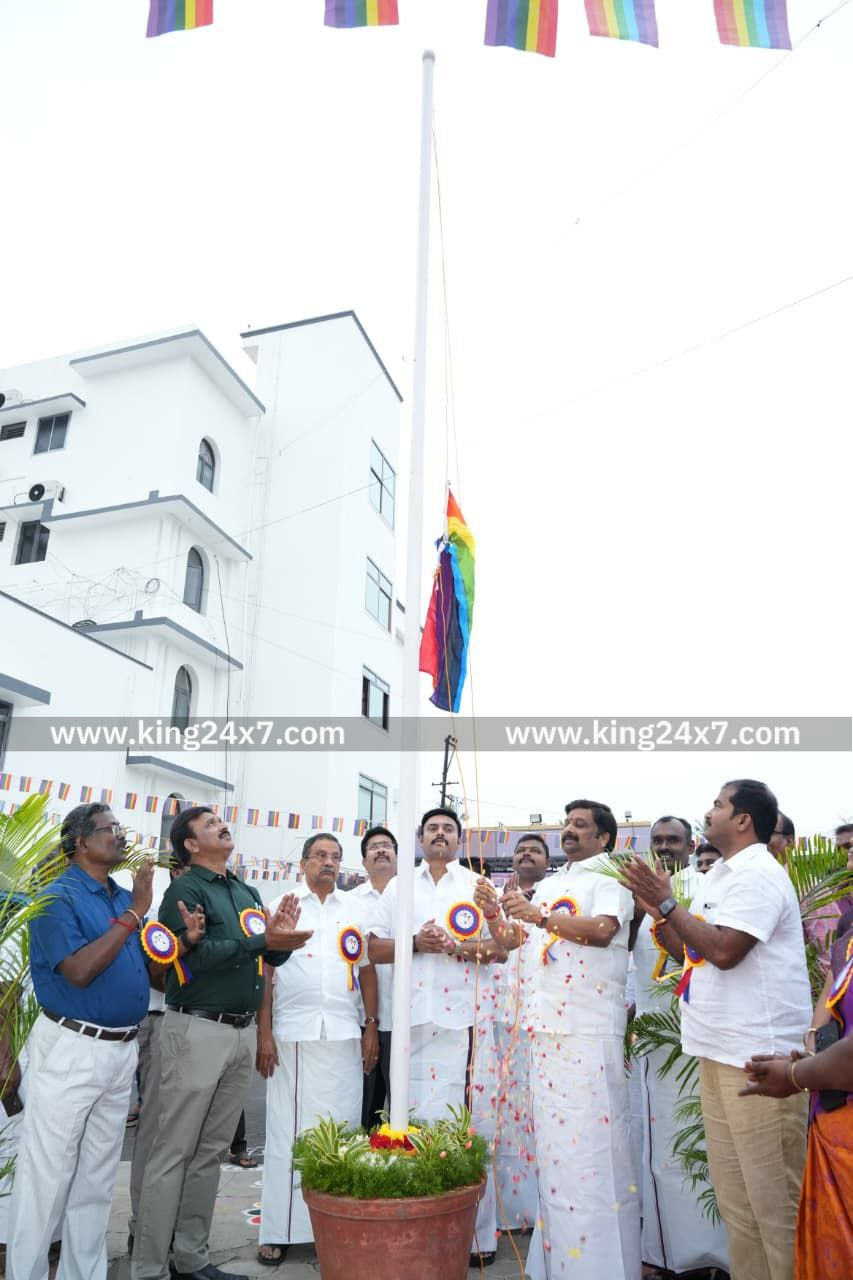 72-வது அனைத்திந்திய கூட்டுறவு வார விழா 4,777 பயனாளிகளுக்கு அரசு நலத்திட்ட உதவிகளை வழங்கிய அமைச்சர் மா.மதிவேந்தன் மற்றும் எம்.பி கே.ஆர்.என் ராஜேஷ்குமார்.