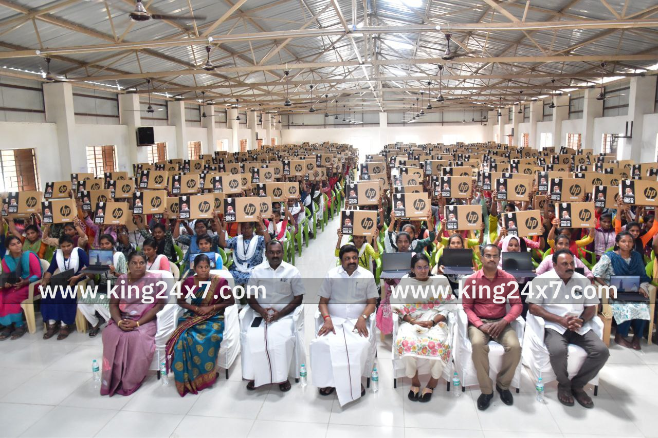 750 கல்லூரி மாணவியர்களுக்கு மடிக்கணினிகளை வழங்கி சிறப்பித்த எம்.பி கே.ஆர்.என் ராஜேஷ்குமார்.
