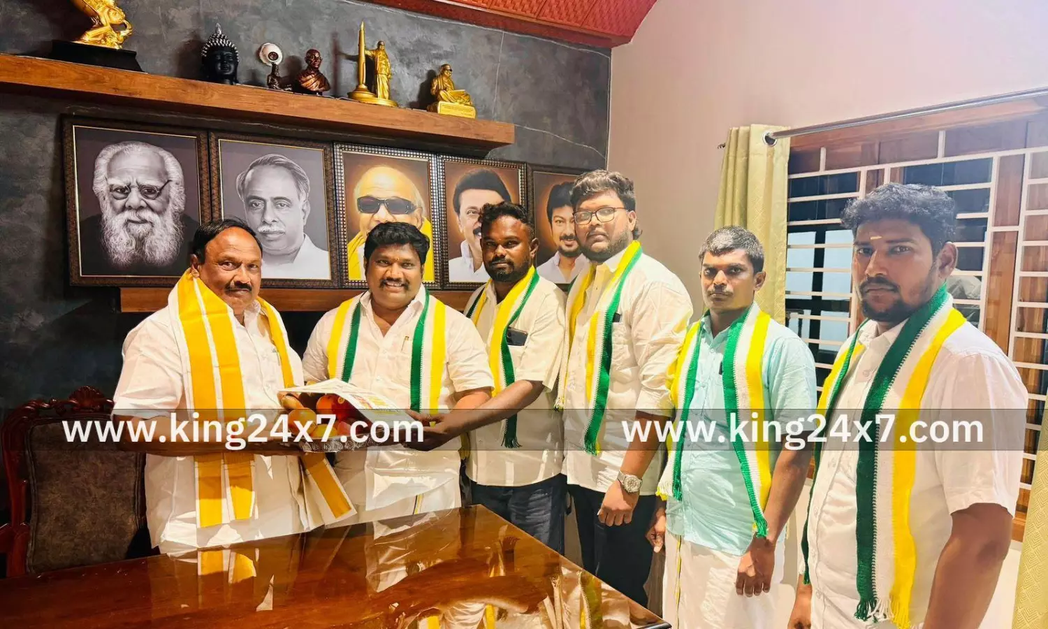 ஈரோடு வடக்கு மாவட்ட கழகச் செயலாளர் என்.நல்லசிவமை புதிய திராவிட கழக தலைவர் கே.எஸ்.ராஜ் கவுண்டர் நேரில் சந்தித்து மாநாட்டிற்கான அழைப்பிதழை வழங்கி வாழ்த்து பெற்றார்.;