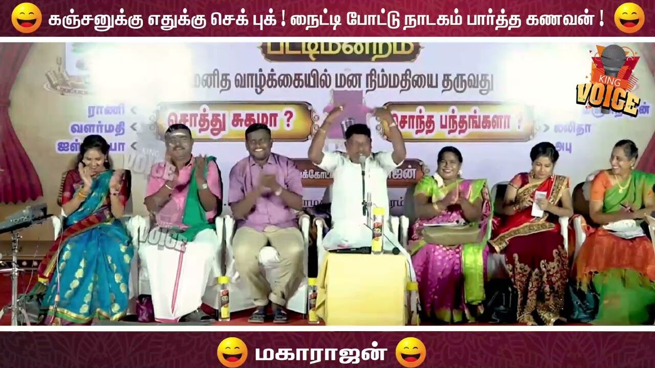கஞ்சனுக்கு எதுக்கு செக் புக் ! நைட்டி போட்டு நாடகம் பார்த்த கணவன் ! Maharajan Ultimate Comedy Speech