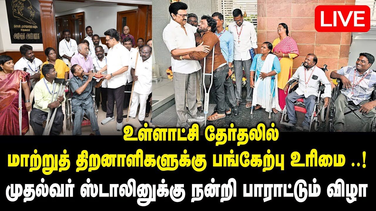 உள்ளாட்சி தேர்தலில் மாற்றுத் திறனாளிகளுக்கு பங்கேற்பு உரிமை..! ஸ்டாலினுக்கு நன்றி பாராட்டும் விழா