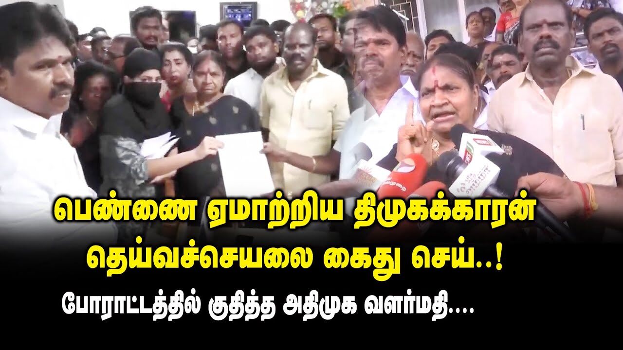 பெண்ணை ஏமாற்றிய திமுகக்காரன் தெய்வச்செயலை கைது செய் ..! - போராட்டத்தில் குதித்த ADMK Valarmathi