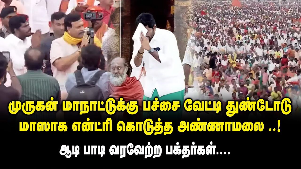 பச்சை வேட்டி துண்டோடு மாஸாக என்ட்ரி கொடுத்த Annamalai Mass Entry at Murugan Bakthargal Manadu