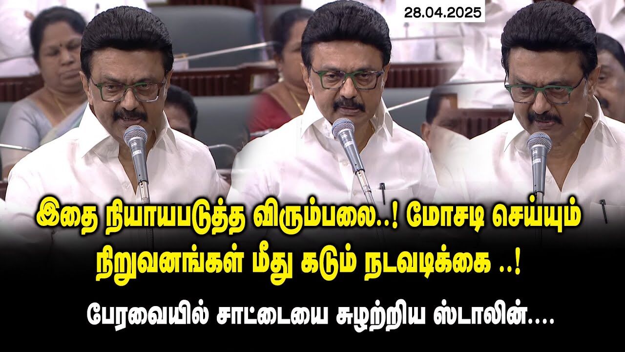 மோசடி செய்யும் நிறுவனங்கள் மீது கடும் நடவடிக்கை!! CM MK Stalin Mass Speech at TN Assembly