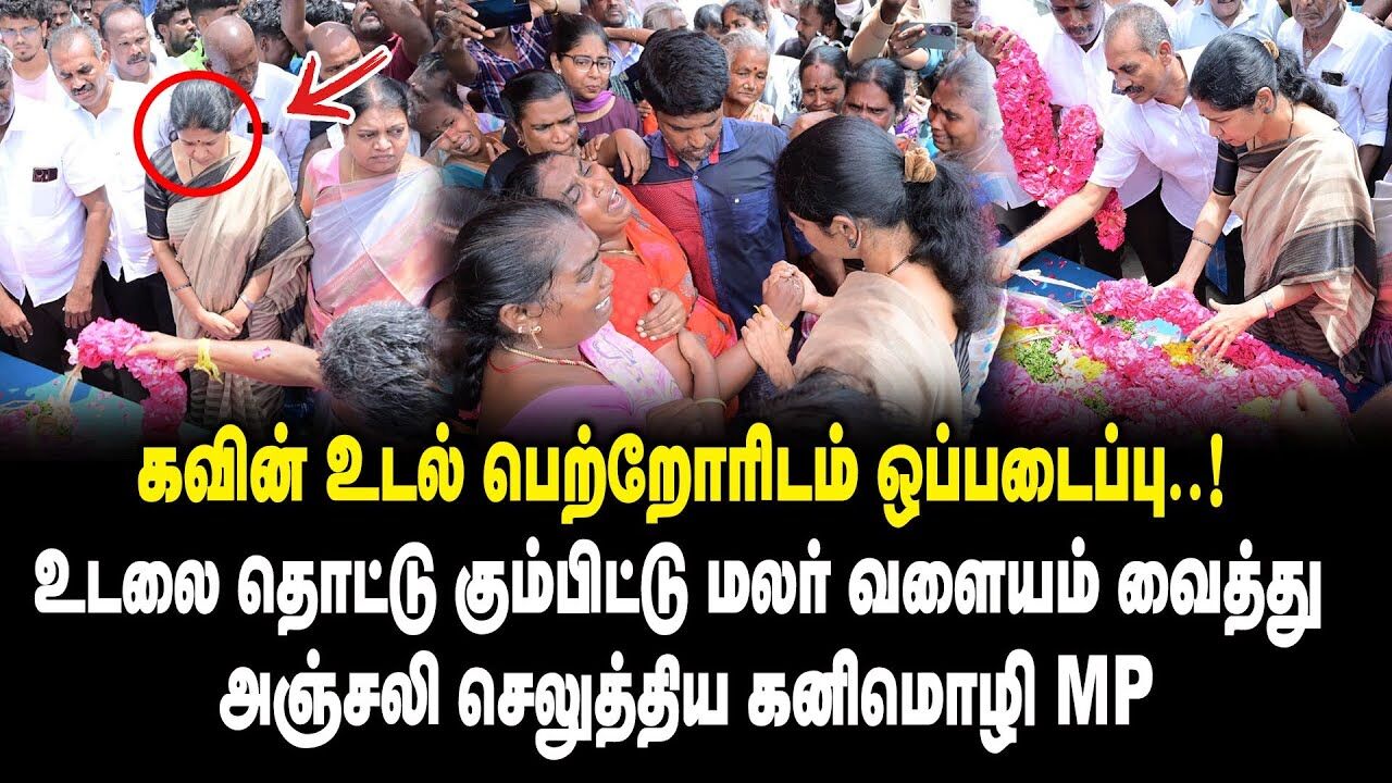 உடலை தொட்டு கும்பிட்டு மலர் வளையம் வைத்து அஞ்சலி செலுத்திய Kanimozhi MP Visit To Kavin Death