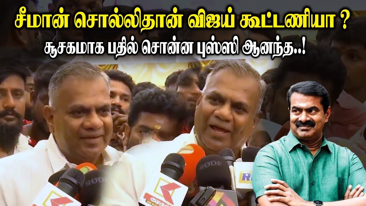 சீமான் சொல்லிதான் விஜய் கூட்டணியா ? சூசகமாக பதில் சொன்ன புஸ்ஸி ஆனந்த!! TVK Bussy Anand Press Meet