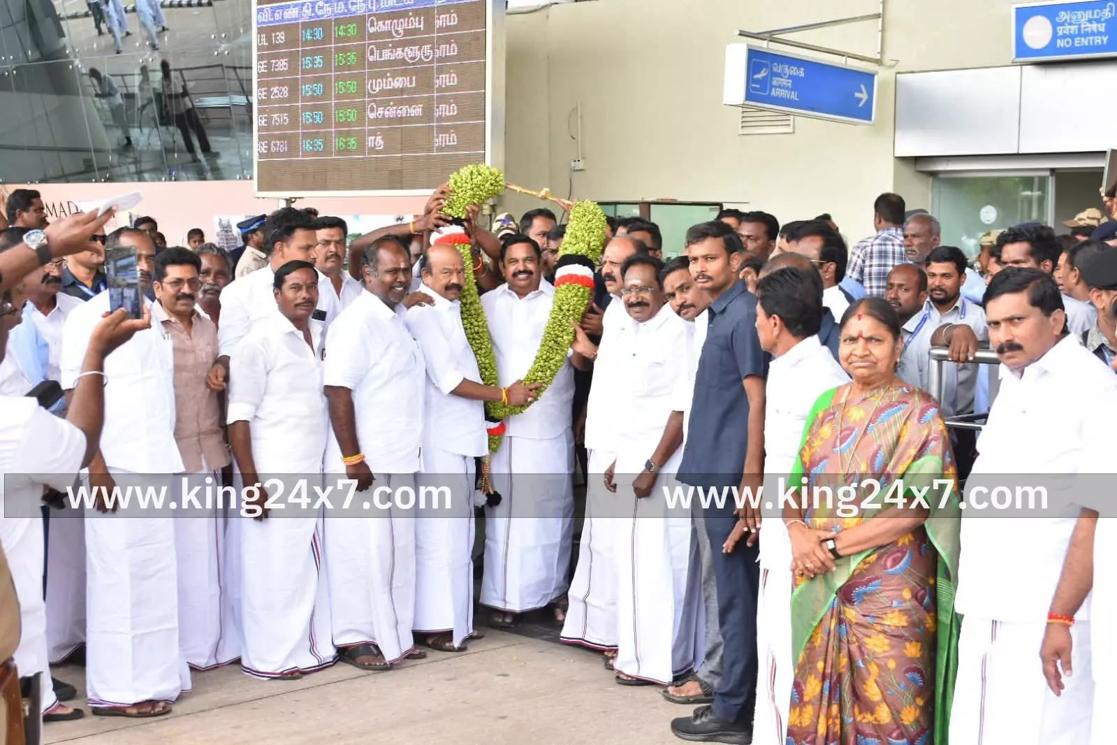 விமான நிலையத்தில் முன்னாள் முதல்வருக்கு உற்சாக வரவேற்பு