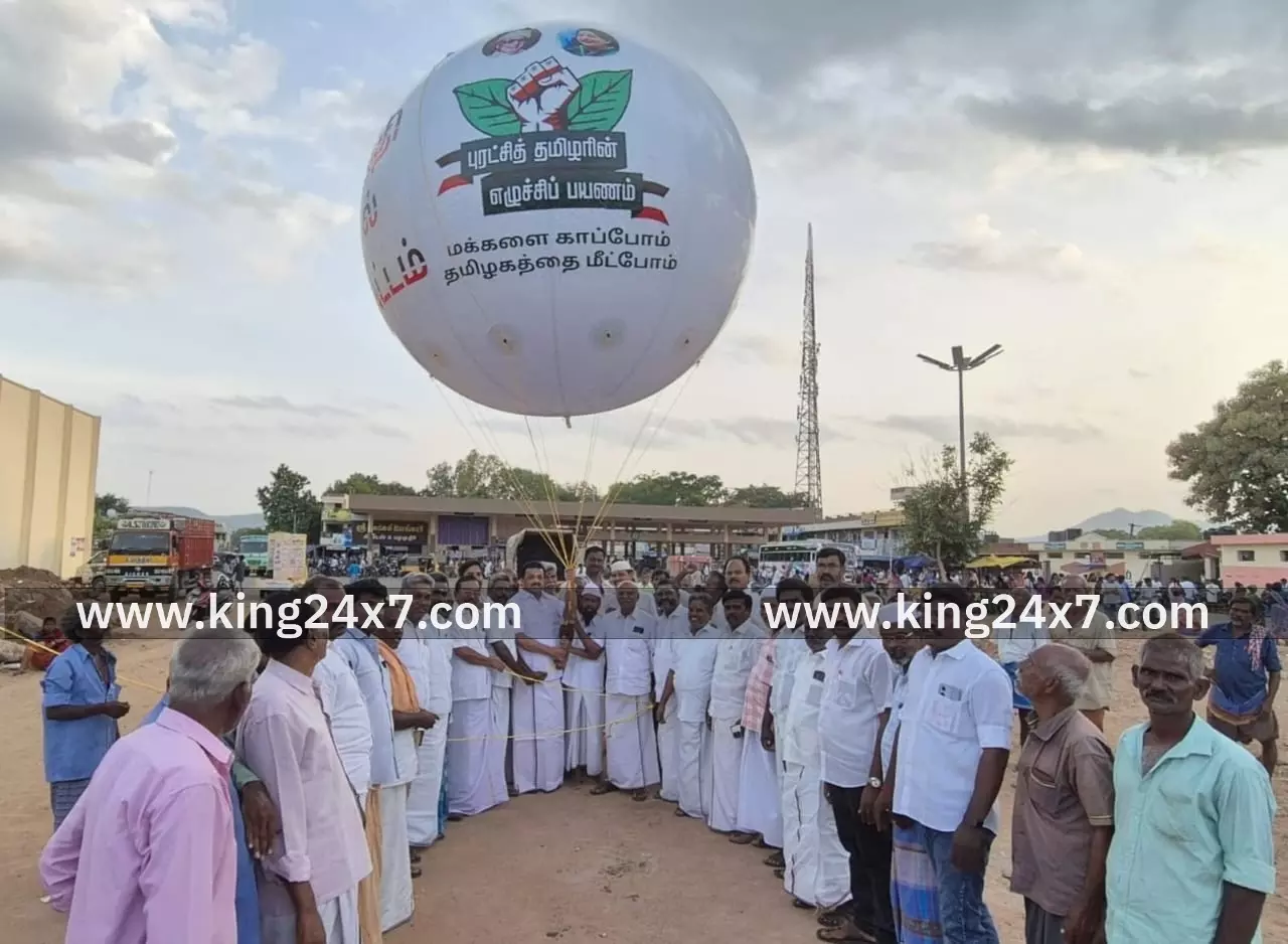 திண்டுக்கல் மாவட்டம் நத்தத்தில் வருகிற 6-ம் தேதி அதிமுக பொதுச்செயலாளர் எடப்பாடி பழனிச்சாமி பிரச்சாரம் செய்ய உள்ள நிலையில் அவரை வரவேற்கும் விதமாக நத்தம் பஸ் நிலையம் முன்பாக அதிமுக சார்பாக ராட்சத பலூன் பறக்கவிடப்பட்டது.