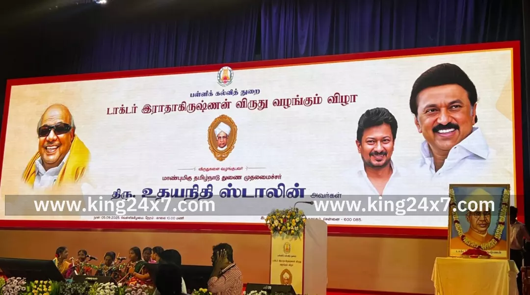 கரூர் - முனைவர் ராமசுப்பிரமணியன் அவர்களுக்கு நல்லாசிரியர் விருது துணை முதலமைச்சர் வழங்கினார். பள்ளிக்கல்வித்துறையில் பள்ளி மற்றும் மாணாக்கர்களின் நலன்களில் தனி அக்கறை கொண்டு சிறப்பாக செயல்படும் ஆசிரியர்களின் பணிகளை பாராட்டி அவர்களை ஊக்கப்படுத்தும் வண்ணம் தமிழக அரசு ஆண்டுதோறும் செப்டம்பா் 5 ஆம் நாள் மாநிலத் தலைநகரான சென்னையில் முதல் அமைச்சரால் & அமைச்சா் பெருமக்களால் சர்வபள்ளி டாக்டர் ராதாகிருஷ்ணன் பெயரில் வழங்கப்படும் நல்லாசிரியர் விருது வழங்கப்பட்டு வருகிறது. அதன் அடிப்படையில் கரூர் மாவட்டத்தில் நல்லாசிரியர் விருது பெறுவதற்கான பட்டியல் தமிழக அரசால் புதன்கிழமை அன்று வெளியிடப்பட்டது. அதில் கரூர் மாவட்டத்தில் 7- ஆசிரியர்கள் தேர்வு செய்யப்பட்டனர். இதில் வெண்ணைமலை பரணி பார்க் கல்வி குழுமத்தில் முதன்மை முதல்வராக பணியாற்றி வரும் முனைவர் ராமசுப்பிரமணியன் தேர்வு செய்யப்பட்டார். இன்று சென்னையில் நடைபெற்ற நல்லாசிரியர் விருது வழங்கும் விழாவில் துணை முதலமைச்சர் உதயநிதி ஸ்டாலின் முனைவர் ராமசுப்பிரமணியன் அவர்களுக்கு நல்லாசிரியர் விருது வழங்கி வாழ்த்து தெரிவித்தார். இதனைத் தொடர்ந்து பள்ளிக்கல்வித்துறை மற்றும் அவருடன் தொடர்பில் உள்ள அனைவரும் அவருக்கு சமூக வலைதளத்திலும் அலைபேசியிலும் வாழ்த்துக்களை தெரிவித்து வருகின்றனர்.