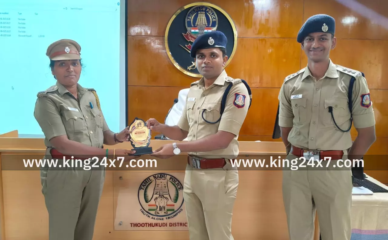 தூத்துக்குடி மாவட்டத்திற்குள் உள்ள காவல் நிலையங்களில் வழக்குப்பதிவு, வழக்கின் விசாரணை, நீதிமன்ற பணி உட்பட அனைத்து பணிகளிலும் சிறப்பாக நடவடிக்கை மேற்கொண்டமைக்காக விளாத்திகுளம், தெர்மல்நகர் ஆகிய நிலையங்களை மாவட்ட காவல் கண்காணிப்பாளர் அவர்கள் சிறந்த பணிகளின் அடிப்படையில் தேர்வு செய்தார். அதேபோன்று காவல் நிலையத்தில் கொடுக்கப்பட்ட மனுக்களின் மீது விரைந்து நடவடிக்கை எடுத்து சிறப்பாக செயல்பட்டதற்காக புதுக்கோட்டை, சிப்காட் ஆகிய காவல் நிலையங்களும், அதிகமான வழக்குகளை E-filing முறையில் நீதிமன்றத்தில் கோப்புக்கு எடுக்க விரைந்து நடவடிக்கை மேற்கொண்டமைக்காக கோவில்பட்டி மேற்கு மற்றும் குளத்தூர் ஆகிய காவல் நிலையங்களும் தூத்துக்குடி மாவட்டத்திற்குள் தேர்வு செய்யப்பட்டடு மேற்படி 6 காவல் நிலையங்களின் சிறப்பான நடவடிக்கைகளுக்காக அதன் காவல் நிலைய ஆய்வாளர்களுக்கு மாவட்ட காவல் கண்காணிப்பாளர் திரு. ஆல்பர்ட் ஜான் மாவட்ட காவல் அலுவலகத்தில் வைத்து நினைவு பரிசு வழங்கி பாராட்டினார்.