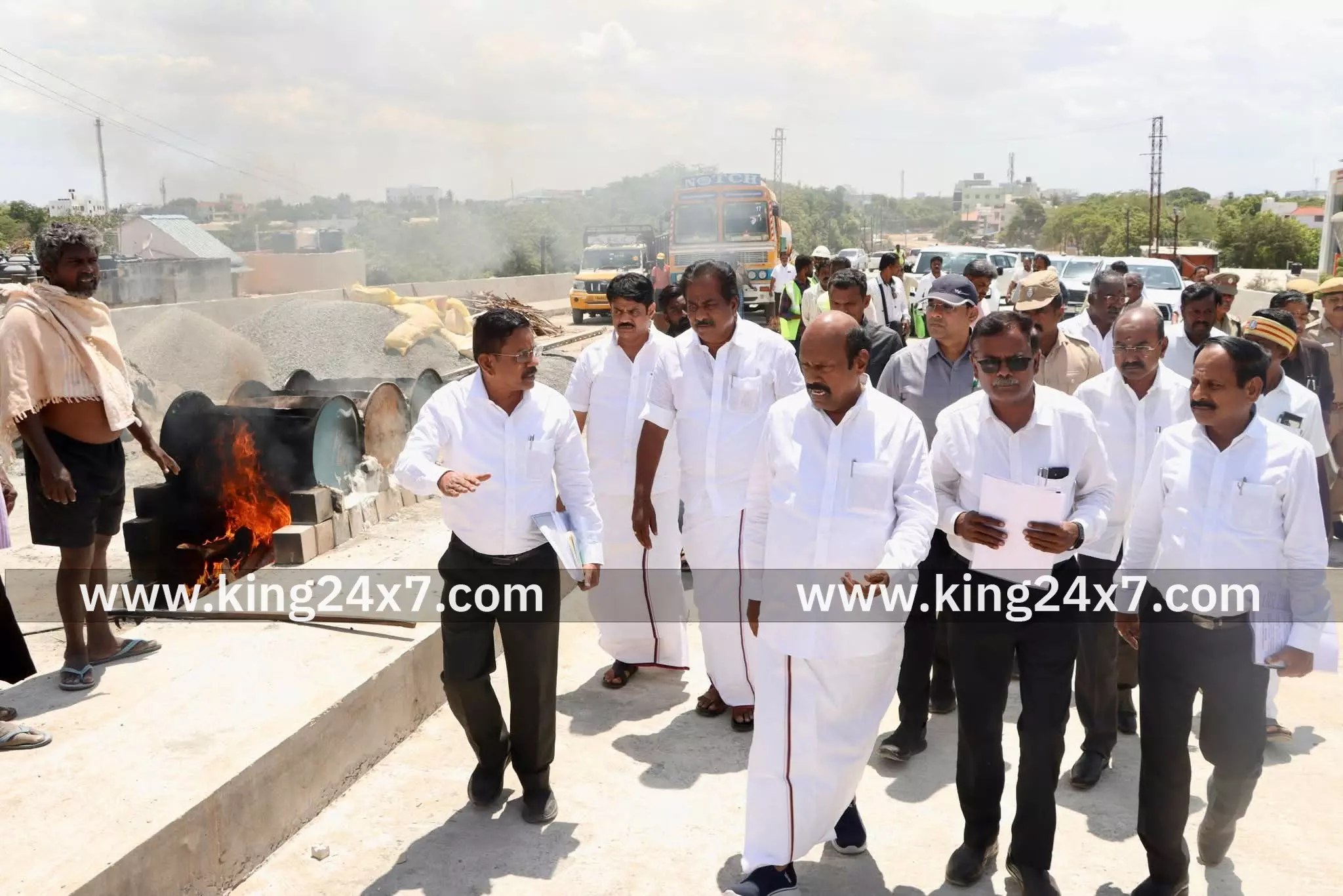 புதிய மேம்பால பணிகளை ஆய்வு மேற்கொண்ட அமைச்சர்கள்