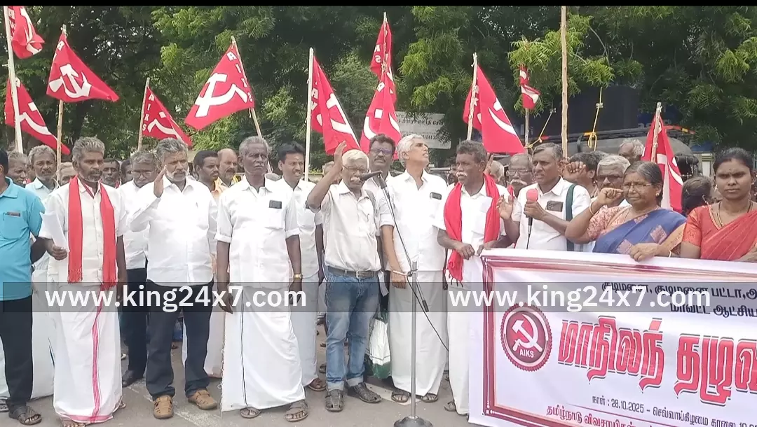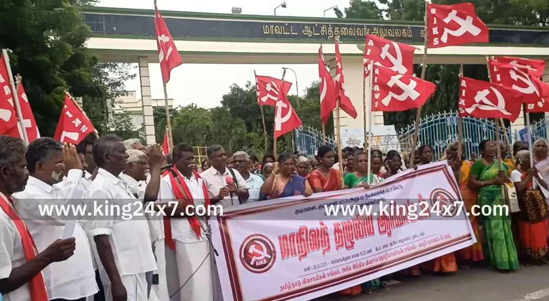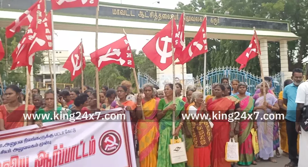 கரூர்- குடிமனை, குடிமனை பட்டா, அனுபவ நிலங்களுக்கு பட்டா கேட்டு மாவட்ட ஆட்சியர் அலுவலகம் முன்பு தமிழ்நாடு விவசாயிகள் சங்கம் சார்பில் ஆர்ப்பாட்டம். தமிழ்நாடு விவசாயிகள் சங்கம் மற்றும் அகில இந்திய விவசாய தொழிலாளர்கள் சங்கம்சார்பில் பட்டா கேட்டு மாநிலம் தழுவிய அளவில் நடைபெற்ற போராட்டத்தில் ஒரு பகுதியாக தமிழ்நாடு விவசாயிகள் சங்கம் மற்றும் அகில இந்திய விவசாய தொழிலாளர்கள் சங்கம் கரூர் மாவட்ட குழு சார்பில் மாநில துணைத்தலைவர் வசந்தாமணி தலைமையில் குடிமனை,குடிமனை பட்டா,அனுபவ நிலங்களுக்கு பட்டா கேட்டு கரூர் மாவட்ட ஆட்சியர் அலுவலகம் முன்பு ஆர்ப்பாட்டம் நடைபெற்றது. இந்த ஆர்ப்பாட்டத்தில் மாநில செயலாளர் பெருமாள் மாவட்டத் தலைவர் கந்தசாமி மாவட்ட செயலாளர்கள் சக்திவேல் ராஜு ஜோதி பாசு மாநகர செயலாளர் தண்டபாணி உள்ளிட்ட சங்க உறுப்பினர்கள் மகளிர் அணியினர் என ஏராளமானோர், கலந்து கொண்டனர். போராட்டத்தின் போது தமிழ்நாட்டில் பல்வேறு வகையான அரசு தரிசு நிலங்களில் வீடு கட்டி பட்டா இல்லாமல் குடியிருந்து வருகிற பல லட்சக்கணக்கான மக்களுக்கு பட்டா வழங்க வலியுறுத்தியும், அரசின் பல்வேறு வகையான புறம்போக்கு நிலங்களில் குடியிருப்பவர்களுக்கு வகை மாற்றம் செய்து பட்டா வழங்க வேண்டும் எனவும், தமிழ்நாட்டில் அனைவருக்கும் சொந்த வீடு திட்டத்தை அறிவித்து மாநில அரசு செயல்படுத்த வேண்டும் எனவும், 1963 இனாம் ஒழிப்பு மற்றும் மயிலா ராயத்துவாரி மாறுதல் சட்டத்தின்படி பட்டியல் செய்யப்பட்டுள்ள நிலங்களை கண்டறிந்து நேரடியாக உழவடை செய்யும் விவசாயிகளுக்கு பட்டா வழங்க தமிழ்நாடு அரசு தனி ஆணையம் உருவாக்க வேண்டும் எனவும், மாநில முழுவதும் வழங்கப்பட்ட சுமார் 12 லட்சம் ஏக்கர் பஞ்சமி நிலங்களில் ஆக்கிரமிப்பில் உள்ளவற்றை மீட்டு பட்டியல் சமூக மக்களுக்கு ஒப்படைக்க மாநில அரசு நடவடிக்கை மேற்கொள்ள வேண்டும் உள்ளிட்ட பல்வேறு கோரிக்கைகளை வலியுறுத்தி கோஷங்களை எழுப்பினர்