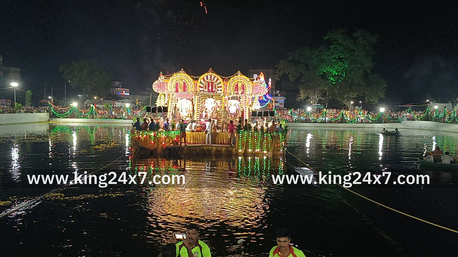 Tiruchengode King 24x7 |4 Nov 2025 8:42 PM ISTதிருச்செங்கோடு மாரியம்மன் திருவிழாவை ஒட்டி பெரிய தெப்பக் குளத்தில் தெப்பத் தேரோட்டம். பூக்களாலும் மின் விளக்குகளாலும் அலங்கரிக்கப் பட்ட தெப்பத் தேரில் ஸ்ரீபெரிய மாரியம்மன், ஸ்ரீசின்ன மாரியம்மன், ஸ்ரீ அழகு முத்து மாரியம்மன் உலா. ஆயிரக்கணக்கான பக்தர்கள் கலந்து கொண்டு தெப்போற்சவத்தை கண்டு சாமி தரிசனம்