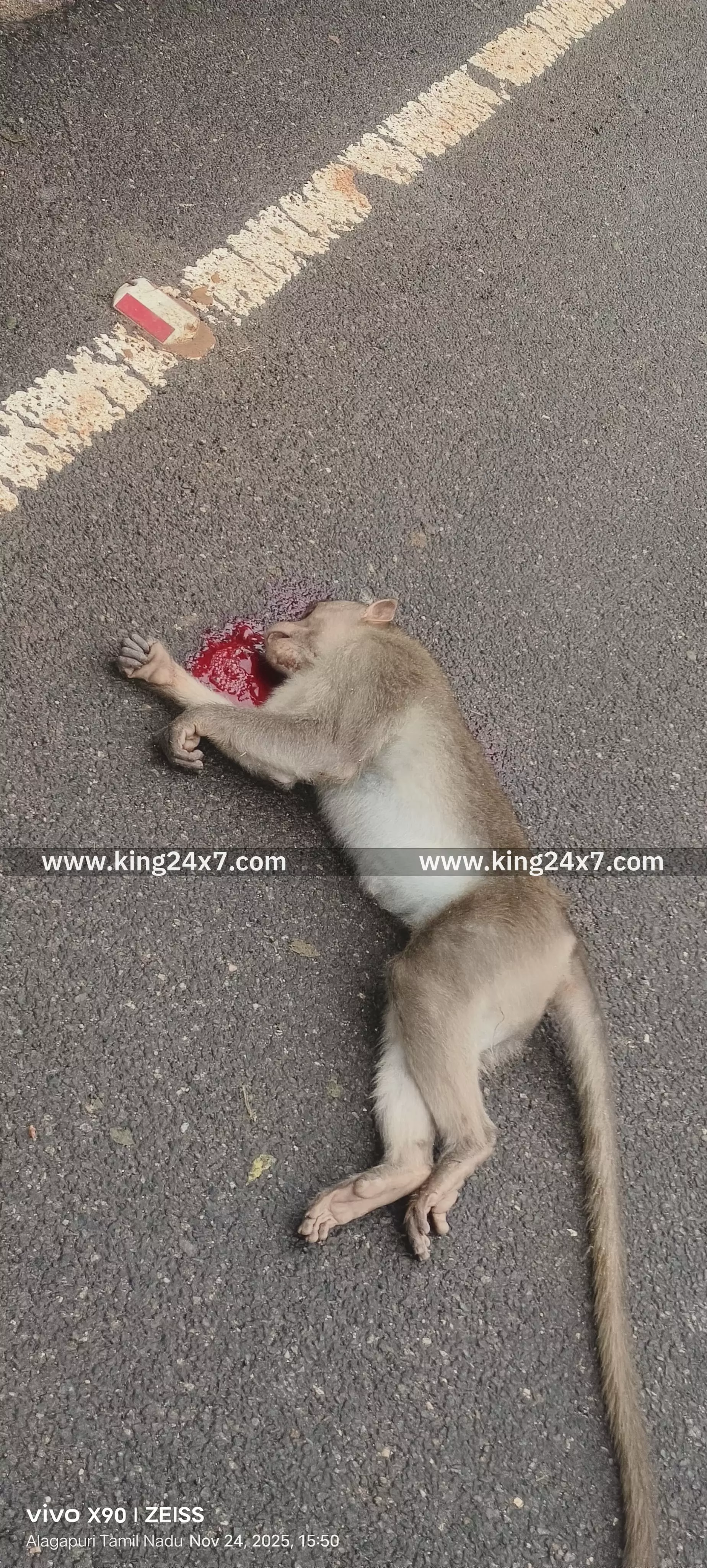 வாகனத்தில் அடிபட்டு இறந்து போன குரங்கின் படக்காட்சிகள்