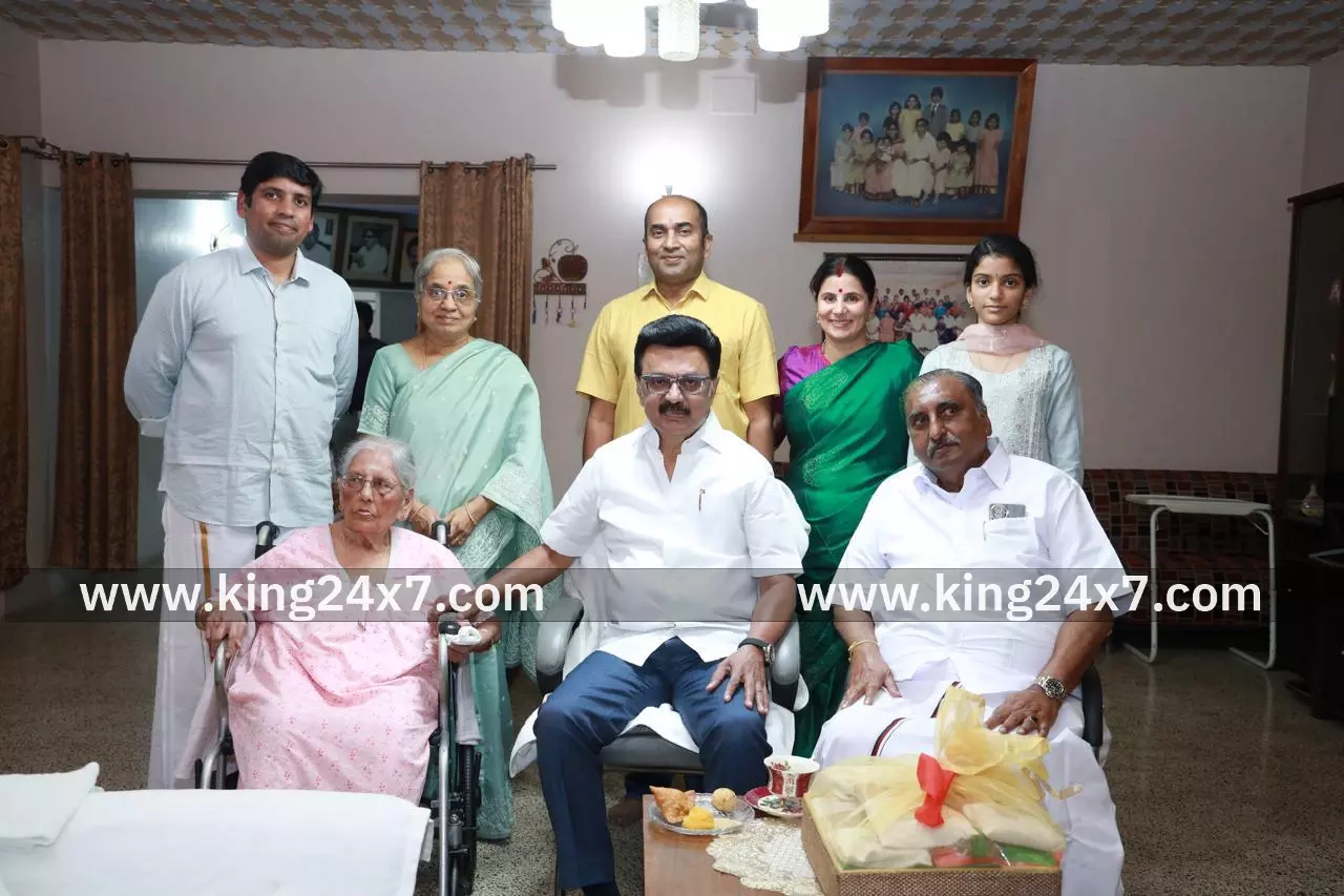 தி.மு.க. முன்னாள் சொத்து பாதுகாப்பு குழு உறுப்பினர் ஜே.கே.கே. சுந்தரம் செட்டியார் மனைவியை காண முதல்வர் ஸ்டாலின் வருகை